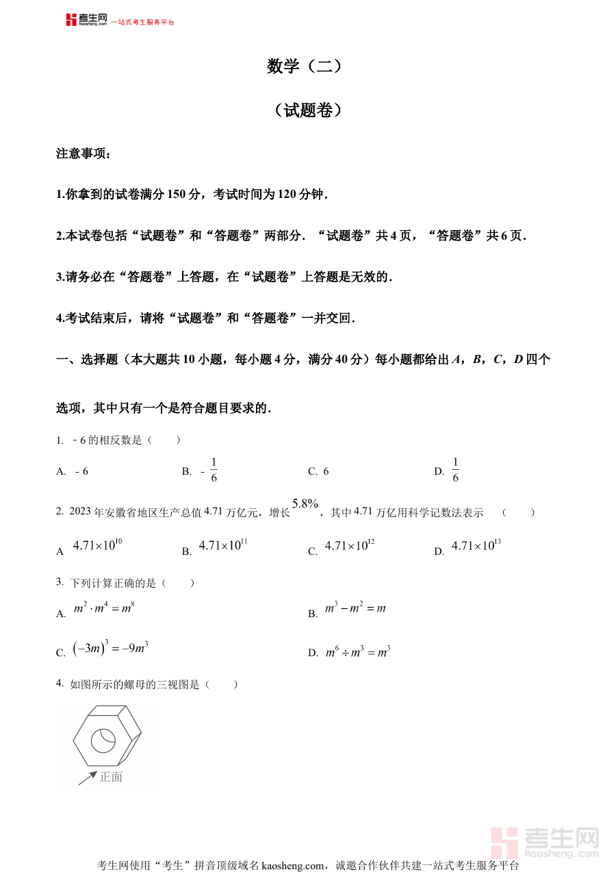 《精品解析:2024年安徽省合肥市多校联考中考二模数学试题(原卷版)》是2024年度针对安徽省合肥市区域内多所中学联合组织的中考第二次模拟考试的数学学科原卷类备考资料。该资料依托合肥市中考备考的阶段性安排,结合多校联考的协同命题特点,为考生提供了贴合本地中考命题趋势的阶段性测试素材。作为中考二模阶段的核心资料之一,它能够帮助考生直观了解当前阶段区域内数学学科的考查方向与整体备考水平,其原卷版的呈现形式保证了试题的原汁原味,避免信息传递过程中的偏差,确保备考方向与联考命题的原始样貌高度一致。