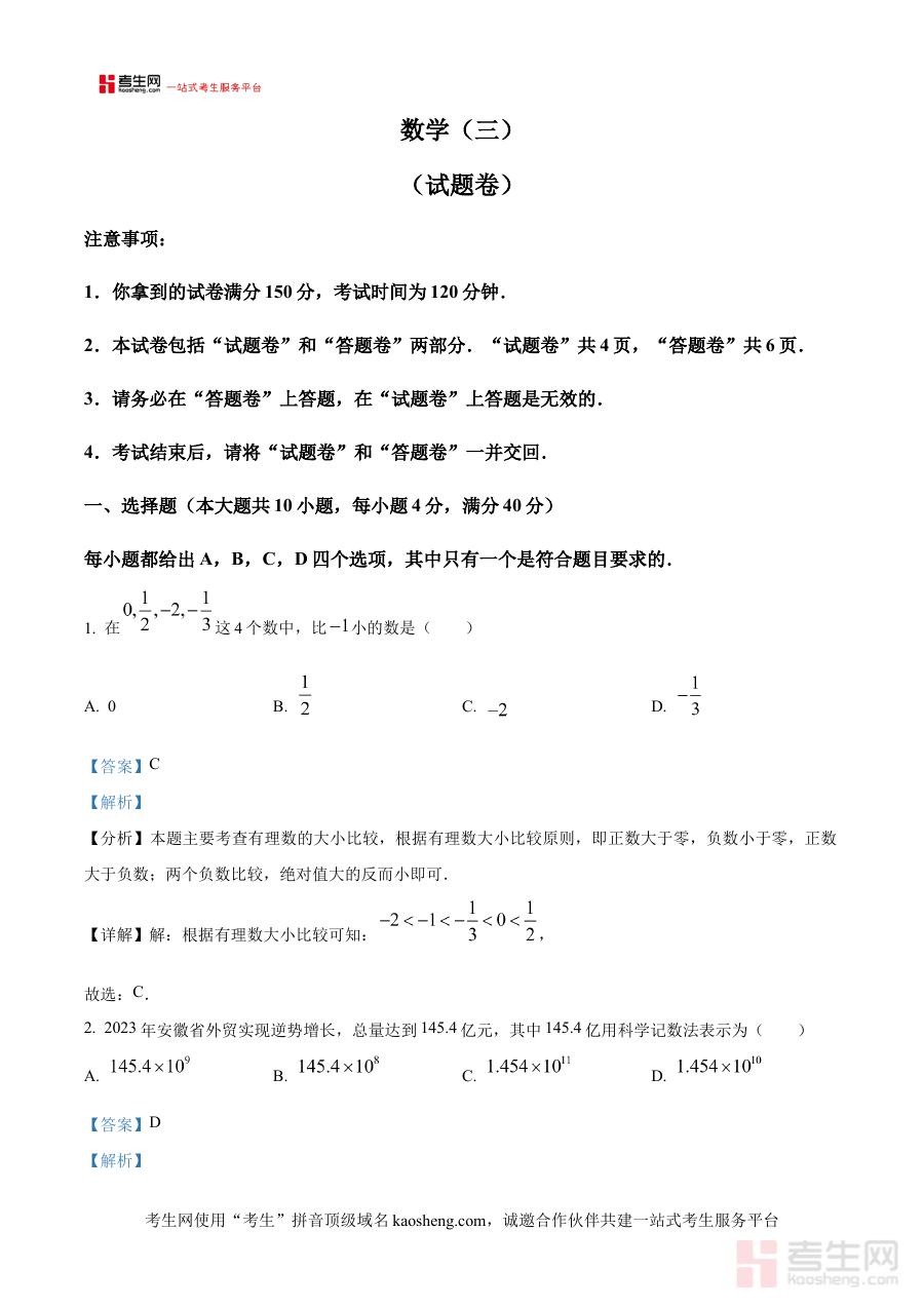 《精品解析:2024年安徽省合肥市多校联考中考夺魁考试(三模)数学试题(解析版)》是针对2024年安徽省合肥市初中毕业生设计的中考前阶段性备考资料,由区域内多所学校联合组织命题,属于中考三模考试范畴。该资料聚焦中考数学学科的考查要求,结合合肥市本地的教学实际与考情特点,为考生提供了贴合区域命题趋势的练习内容及专业解析支持。