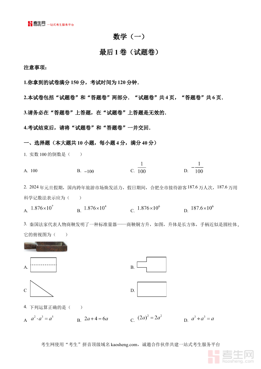 《精品解析:2024年安徽省合肥市多校联考中考最后一卷(三模)数学试题(原卷版)》是2024年安徽省合肥市针对中考备考阶段推出的重要资料,聚焦当地多所学校联合组织的中考前最后一次模拟考试(三模)的数学学科试题。作为中考备考后期的关键检测载体,该资料保留了试题的原始呈现形式,能够真实反映此次多校联考的命题方向与考查重点,为考生和教学者提供贴近本地中考实际的备考参考依据。多校联考的形式使得试题具有一定的区域代表性和综合性,有助于使用者把握当前阶段中考数学备考的整体趋势,了解区域内同类学校学生的学习水平与应试能力状况。