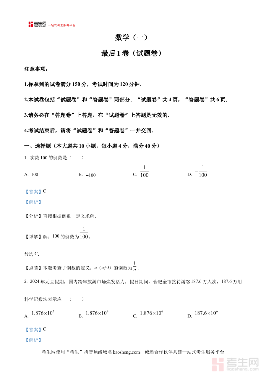 本资料适用于2024年安徽省合肥市及周边地区的初三学生、数学教师以及备考家长群体。对于初三学生而言,它能帮助熟悉中考数学的题型结构与难度水平,提升应试能力与解题技巧;对于数学教师来说,可作为教学参考资料,了解区域内学生整体学习状况,调整教学计划与辅导重点;对于家长而言,则能辅助监督孩子复习进度,配合教师制定更合理的备考方案。其作为中考前最后一次大型模拟考试的解析资料,对考生调整备考状态、增强应试信心具有重要价值。