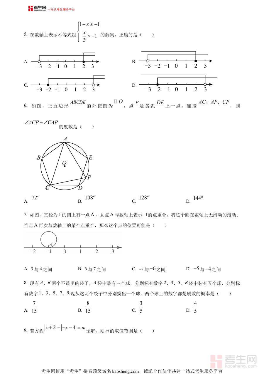 该资料主要用于初中毕业生在中考复习中期阶段的学情诊断与备考规划指导。通过使用原卷版试题,考生可以直观了解自身在数学学科各知识模块的掌握情况,及时发现学习中的薄弱环节,进而针对性地调整后续复习策略;同时,教师也可借助该资料开展班级整体学情分析,为制定更精准的复习计划提供数据支撑,助力师生明确下一阶段的复习重点与方向。