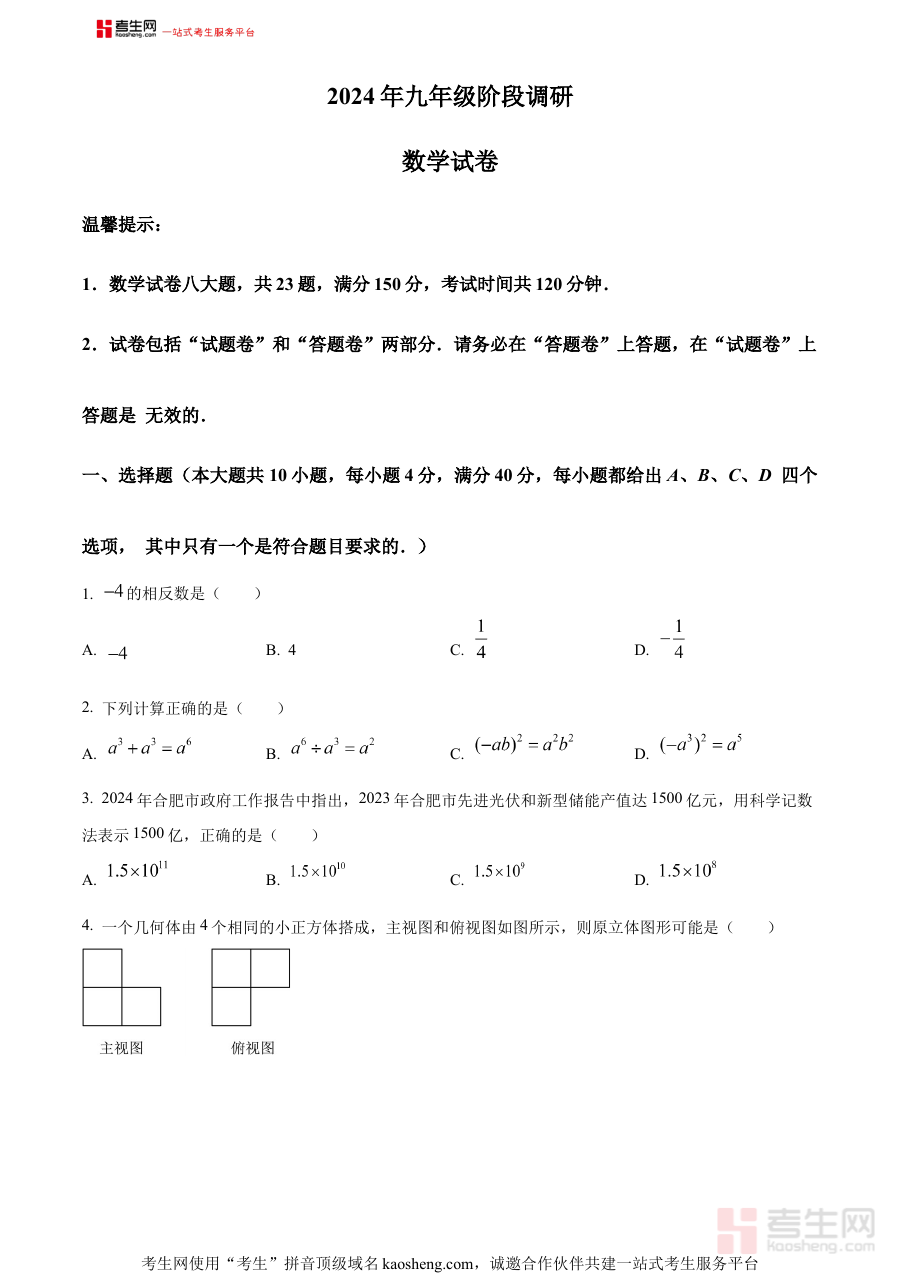 《精品解析:2024年安徽省淮北市烈山区中考二模数学试题(原卷版)》是2024年安徽省淮北市烈山区针对初中毕业生推出的中考数学第二次模拟考试配套备考资料,紧密结合当地中考数学的命题导向与教学大纲要求,充分反映烈山区初中数学教学的阶段性重点与难点,为考生提供贴近本地考试实际的练习素材,助力其熟悉中考二模考试的形式与节奏,是区域内中考数学阶段性复习的重要参考资源。