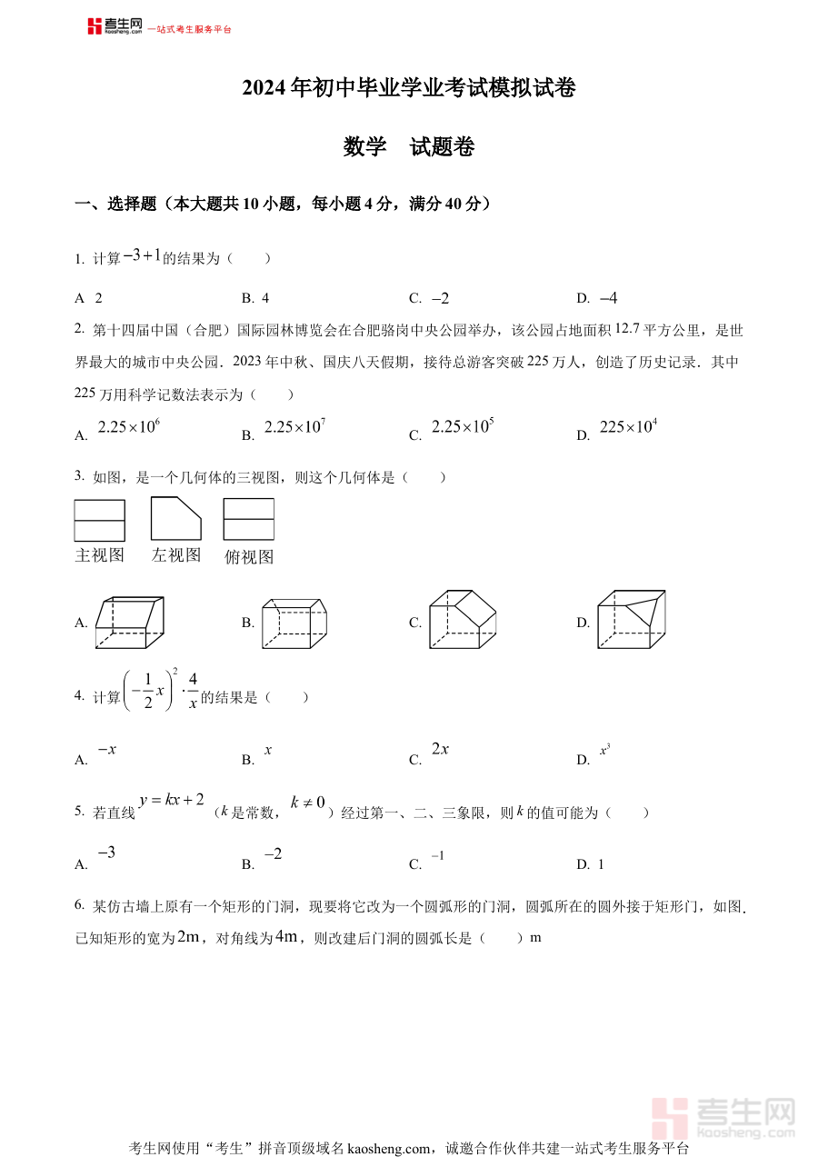 该资料主要适用于2024年安徽省合肥市新站区的应届初中毕业生,特别是处于中考备考关键冲刺阶段的学生群体。通过使用这份二模数学试题原卷进行阶段性检测,考生可以有效巩固所学知识、提升解题技巧和应试能力;同时,初中数学教师也可将其作为教学资源库的重要补充,用于课堂教学、作业设计或模拟考试组织等环节,帮助学生更好地适应本地中考命题特点。这份资料在中考前的关键阶段能够发挥重要作用,助力考生高效规划复习方向、增强备考信心,为取得理想的中考成绩提供有力支持。