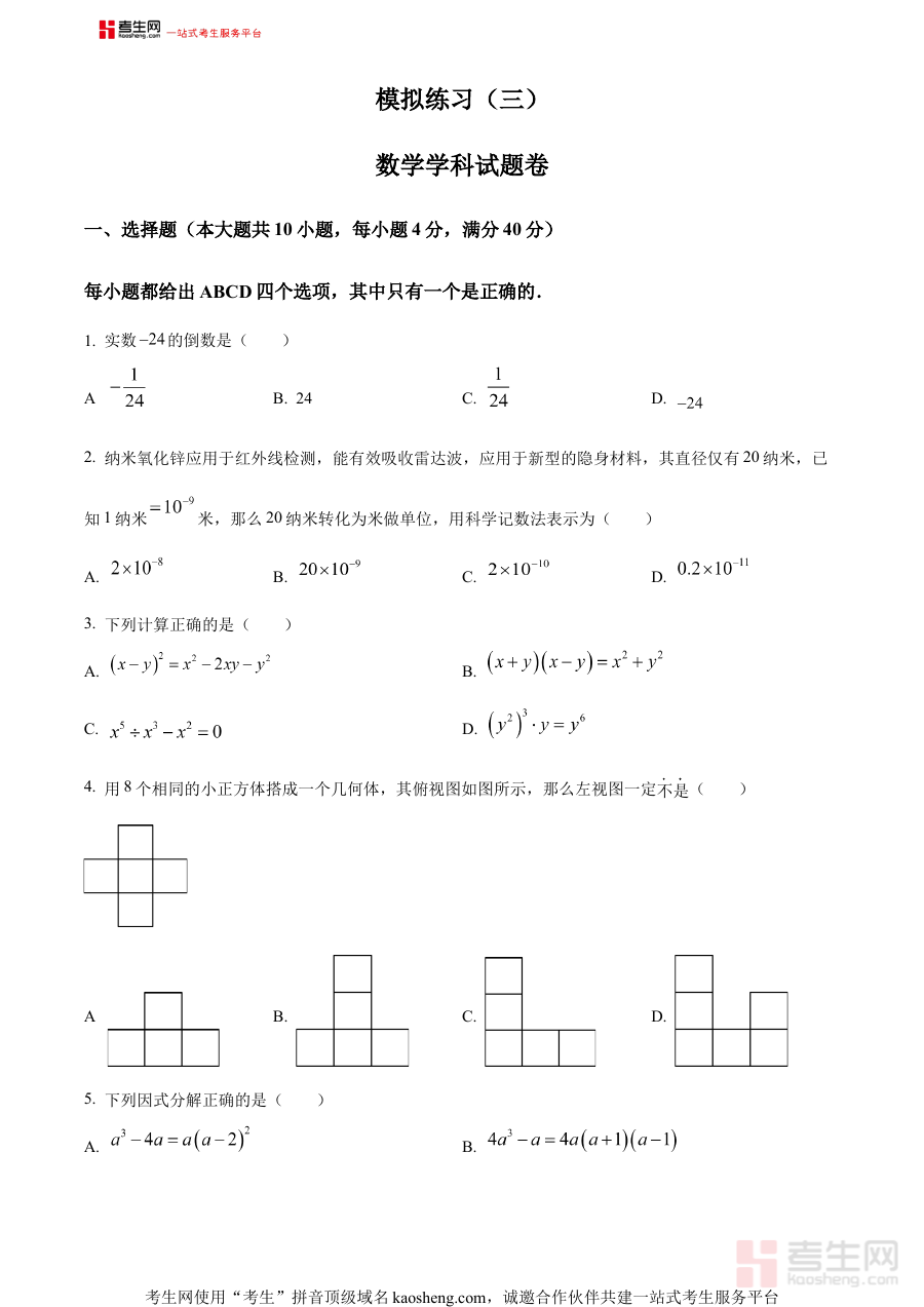 该资料作为中考三模阶段的原卷版试题,核心用途在于支持考生在中考冲刺阶段开展全面的学情诊断工作,通过模拟真实的中考考试场景与题型结构,帮助考生精准识别自身知识体系中的薄弱环节与应试能力短板;同时也为教师提供有效的教学反馈依据,辅助教师调整后续的备考规划与复习重点,确保备考过程更具针对性与高效性。