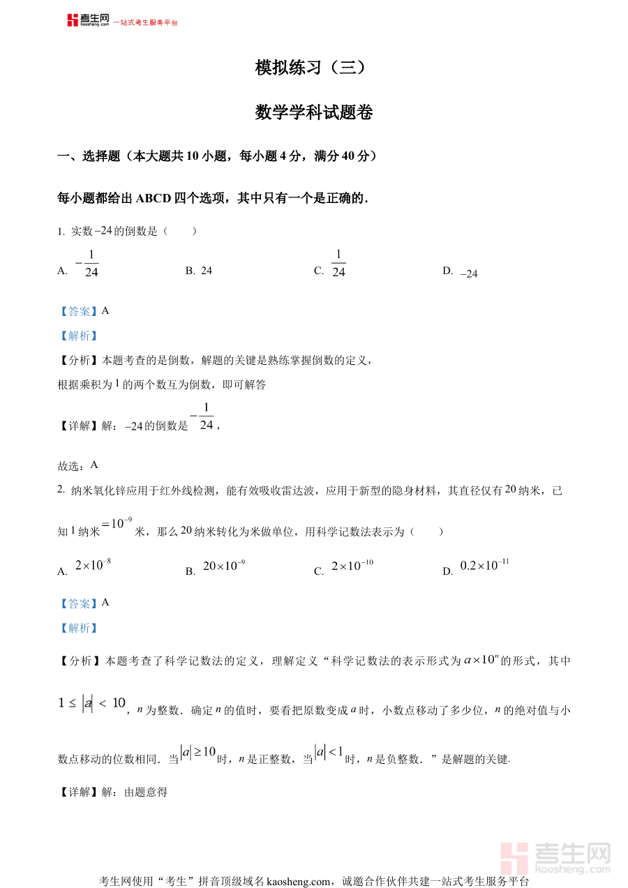 《精品解析:2024年安徽省合肥市第四十二中学数学中考三模试题(解析版)》是2024年面向安徽省合肥市中考数学学科的阶段性备考资料,由合肥市第四十二中学推出的三模试题配套解析版本。该资料紧密贴合本地中考数学的命题趋势与考查要求,为考生提供了与中考节奏相匹配的阶段性检测内容,有助于考生提前适应中考数学的考试形式与难度层级,是中考前关键阶段不可或缺的备考资源之一。