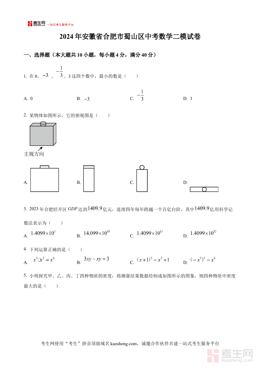 《精品解析:2024年安徽省合肥市蜀山区中考二模数学试题(原卷版)》是2024年安徽省合肥市蜀山区针对中考数学科目推出的第二次模拟考试原卷资料。作为中考前关键的阶段性测试载体,它紧密契合当地中考数学的命题规律与考查方向,为考生提供了与真实中考场景高度一致的练习机会。这份资料依托蜀山区教育部门对中考数学的研究成果,能够有效反映当前阶段中考复习的重点与难点,帮助考生提前适应考试氛围与题型设置。