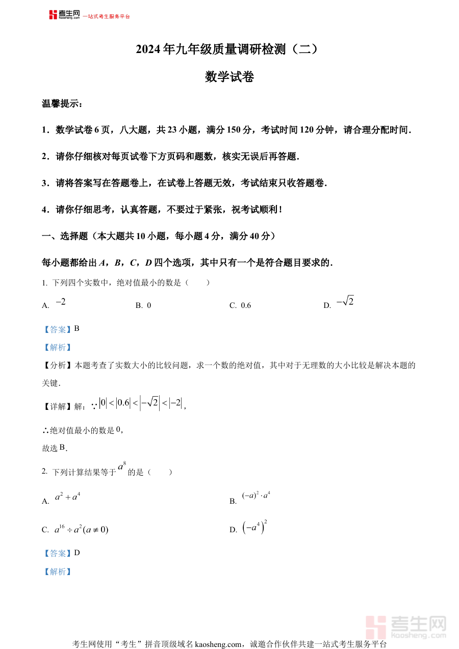 《精品解析:2024年安徽省合肥市蜀山区中考模拟数学试题(解析版)》是针对2024年安徽省合肥市蜀山区中考数学模拟考试推出的专业备考资料。作为区域中考备考的重要参考材料,它依托蜀山区教育教学实际情况,结合2024年中考数学命题趋势方向,为考生提供了贴合区域考试要求的模拟训练及解析内容,有助于考生提前熟悉区域中考数学考试的形式与特点,为后续的正式考试做好充分准备。