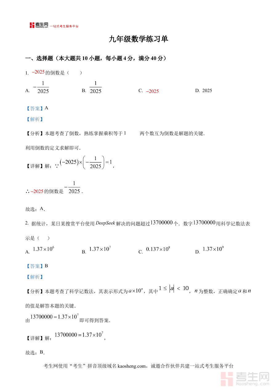 《精品解析:2025年安徽省合肥一六八中学中考三模数学试卷(解析版)》是面向2025年安徽省合肥市中考考生的重要备考资料,依托合肥一六八中学组织的中考第三次模拟考试数学科目内容编制而成,紧密贴合安徽省中考数学命题导向与该校的教学实践特色。该资料不仅呈现了模拟考试的完整试卷形式,还配备了详细的解析内容,旨在为考生提供贴近区域考试实际的实战演练机会,帮助考生提前熟悉中考数学的考查维度与模拟考试的整体流程,是中考前冲刺阶段极具参考价值的学习资源。