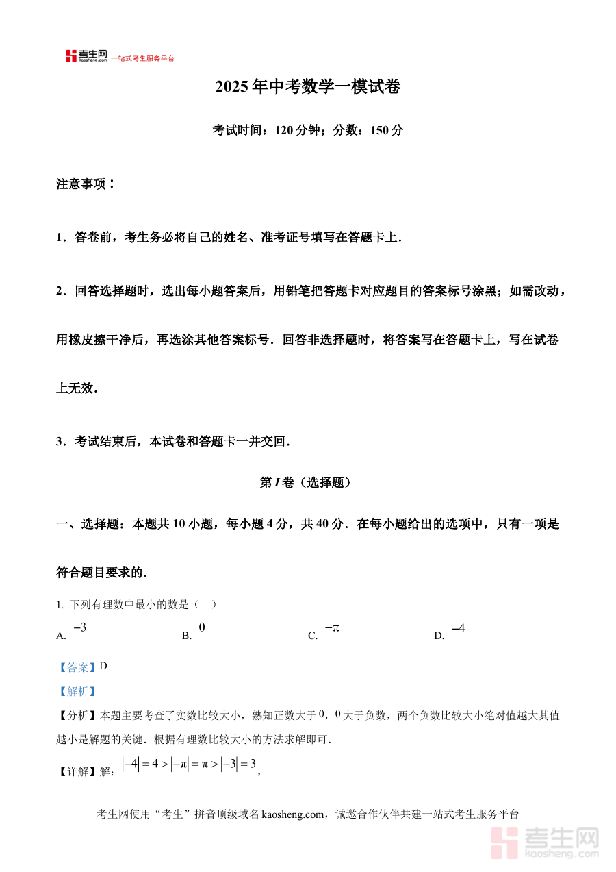这份资料在中考数学备考过程中具备多重实用价值:可用于考生的学情诊断,通过完成试卷并对照解析识别自身在数学知识模块中的薄弱环节;可辅助备考规划,结合试卷考察重点与自身检测结果,精准调整后续复习方向与节奏;同时作为多校联考的标准化试卷,能为考生提供接近中考实战的检测场景,帮助提前适应考试氛围与时间管理要求。