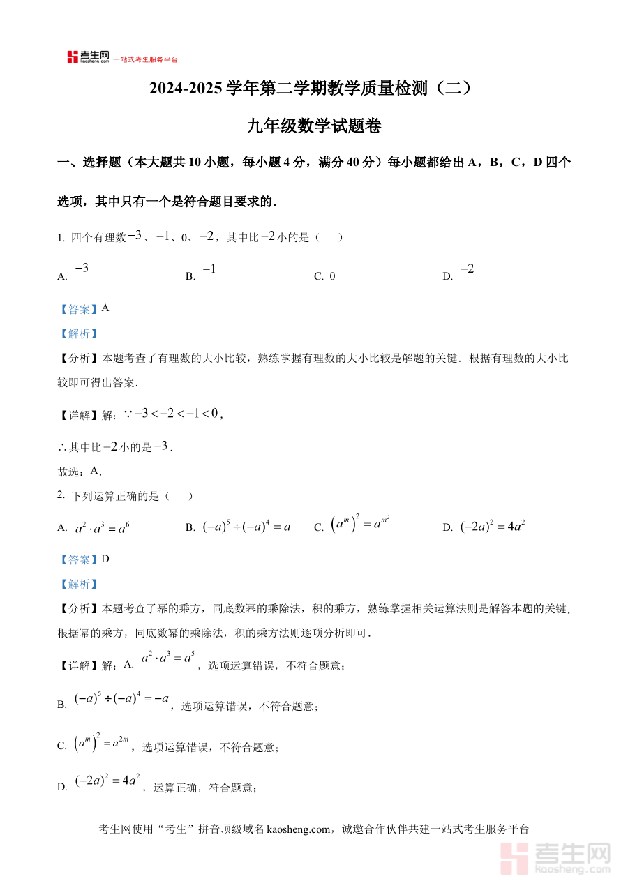 本资料主要适用于2025年参加中考的合肥市包河区初中毕业生以及从事初中数学教学工作的教师群体。对于考生而言,这份二模试卷是中考前关键的阶段检测载体,能够帮助他们模拟真实考试场景、调整应试状态、优化答题节奏,增强考试信心;对于教师来说,解析版内容可用于分析学生的答题数据、总结高频考点与易错点,制定更精准的复习计划,提升教学效率。通过这份资料的有效利用,考生和教师都能更好地把握中考数学的备考重点,为最终的中考取得优异成绩奠定坚实基础。