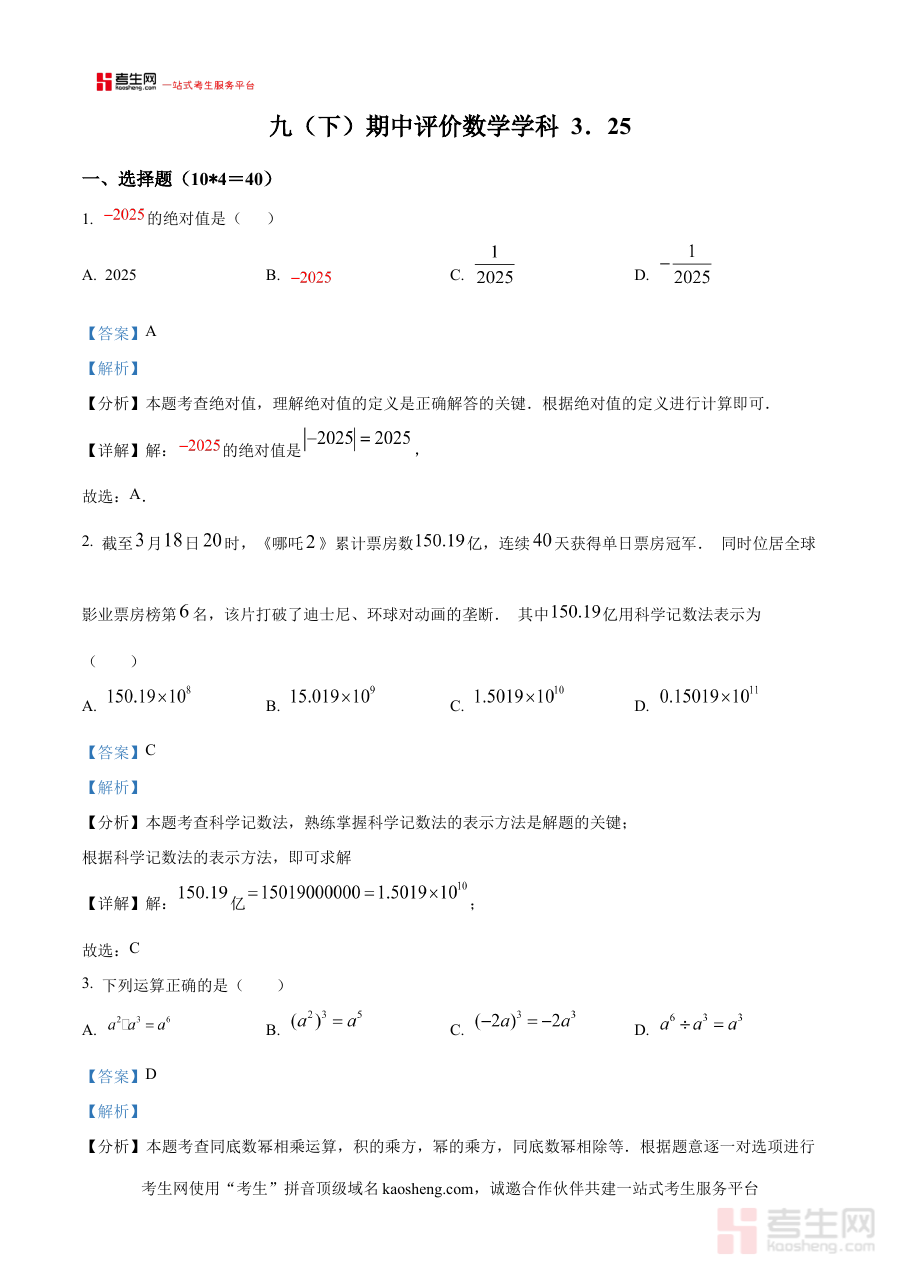 《精品解析:2025年安徽省合肥市寿春中学(南国校区)九年级中考一模数学试卷(解析版)》是针对2025年安徽省合肥市寿春中学南国校区九年级学生推出的中考一模数学备考资料。该资料聚焦中考前的关键阶段性检测,结合寿春中学南国校区的教学实际与中考数学的考查方向,为使用者提供了贴近校区学情与中考要求的检测内容及配套解析,是了解该校区九年级学生数学学习进展与应试能力的重要参考资料。