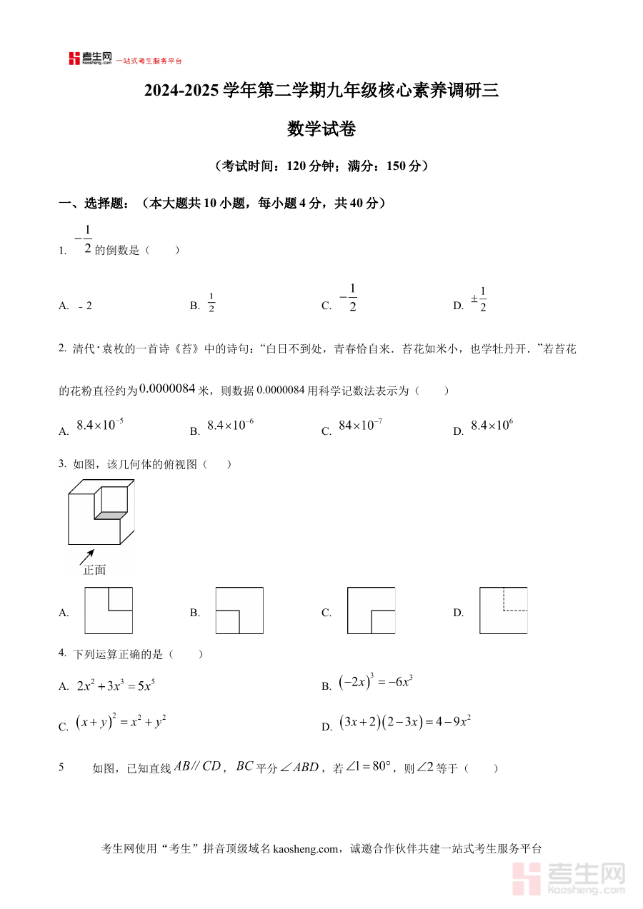 该原卷版资料的核心用途在于助力考生开展精准学情诊断,考生通过完成这份试卷可直观掌握自身对数学知识体系的掌握程度,及时发现知识漏洞与薄弱环节;同时也能为教师的备考规划提供参考依据,帮助教师把握班级整体学习状况,调整后续复习策略,开展更具针对性的指导;此外作为阶段检测工具,它能让考生提前熟悉中考数学的考试时长、题型分布及答题规范,逐步培养良好应试节奏与答题习惯。