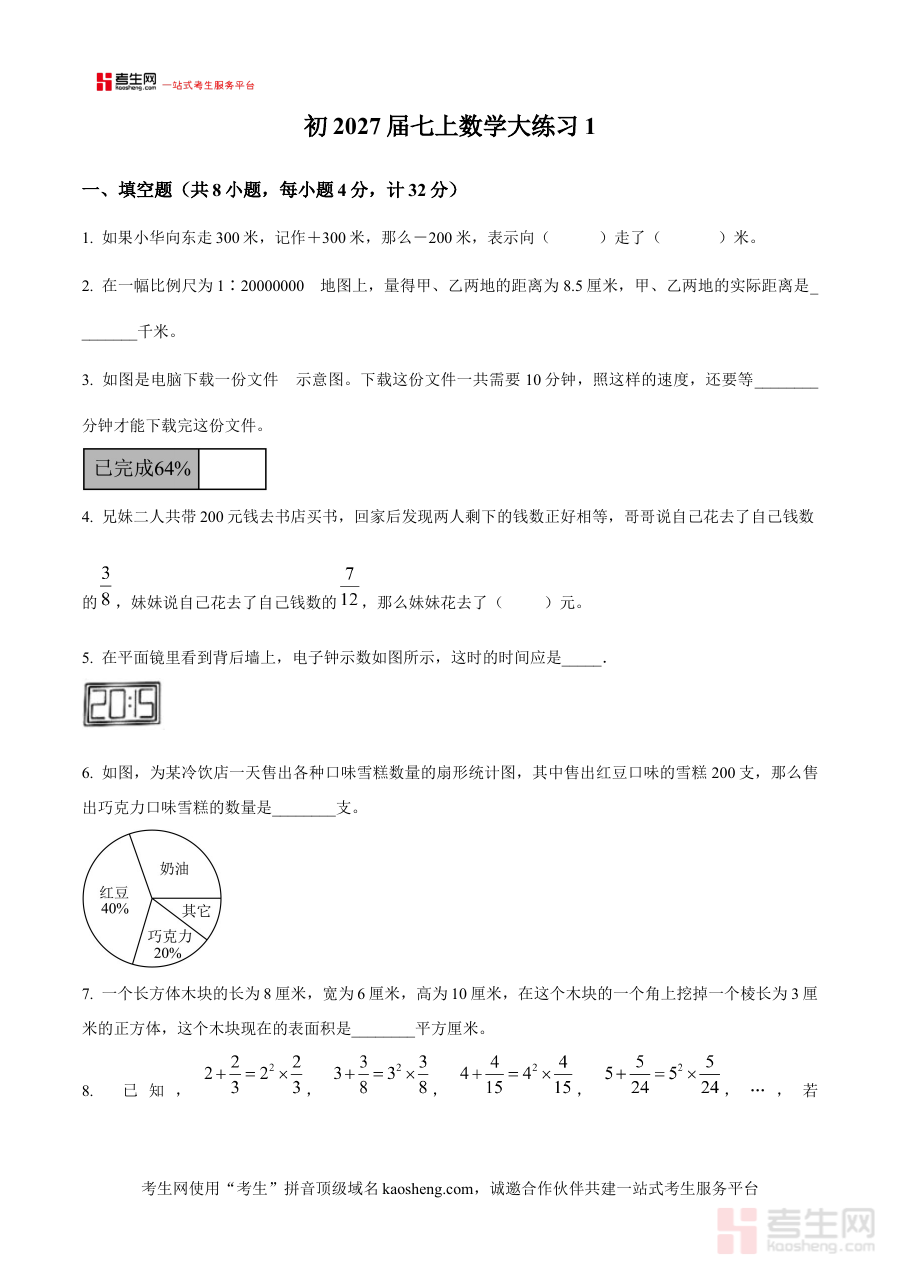 该资料的适用人群主要为即将升入西北工业大学附属中学初中部七年级的学生、关注孩子数学学习的家长及该校初中部的数学教师。对于学生,它是开学前进行自我模拟测试、适应分班考试节奏的理想材料;对于家长,它能帮助家长直观了解孩子的数学水平,配合学校做好开学前的准备工作;对于教师,它可用于分班考试的辅助评估,为后续分层教学或个性化指导提供支持。整体而言,这份原卷版资料在阶段检测与备考规划方面具有显著价值,能有效助力七年级新生平稳过渡到初中数学学习阶段。