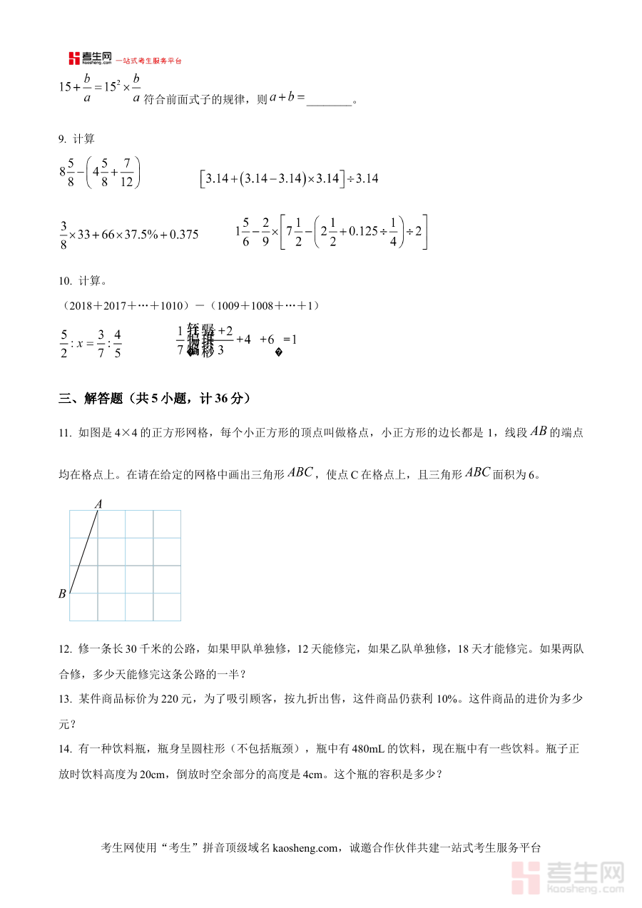 这份资料的核心用途涵盖学情诊断、备考规划与阶段检测。通过完成该试卷,学生可全面了解自身升入七年级前的数学知识储备情况,快速定位知识薄弱环节,为开学后的数学学习制定更具针对性的规划;同时,它也可作为家长了解孩子数学基础水平的有效工具,辅助家长为孩子提供精准的学习支持;对于教师而言,这份原卷可作为分班教学前的参考材料,帮助教师初步掌握新生的数学能力分布,为后续教学安排提供数据依据。