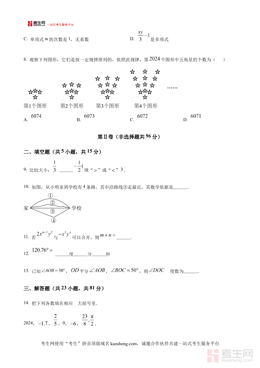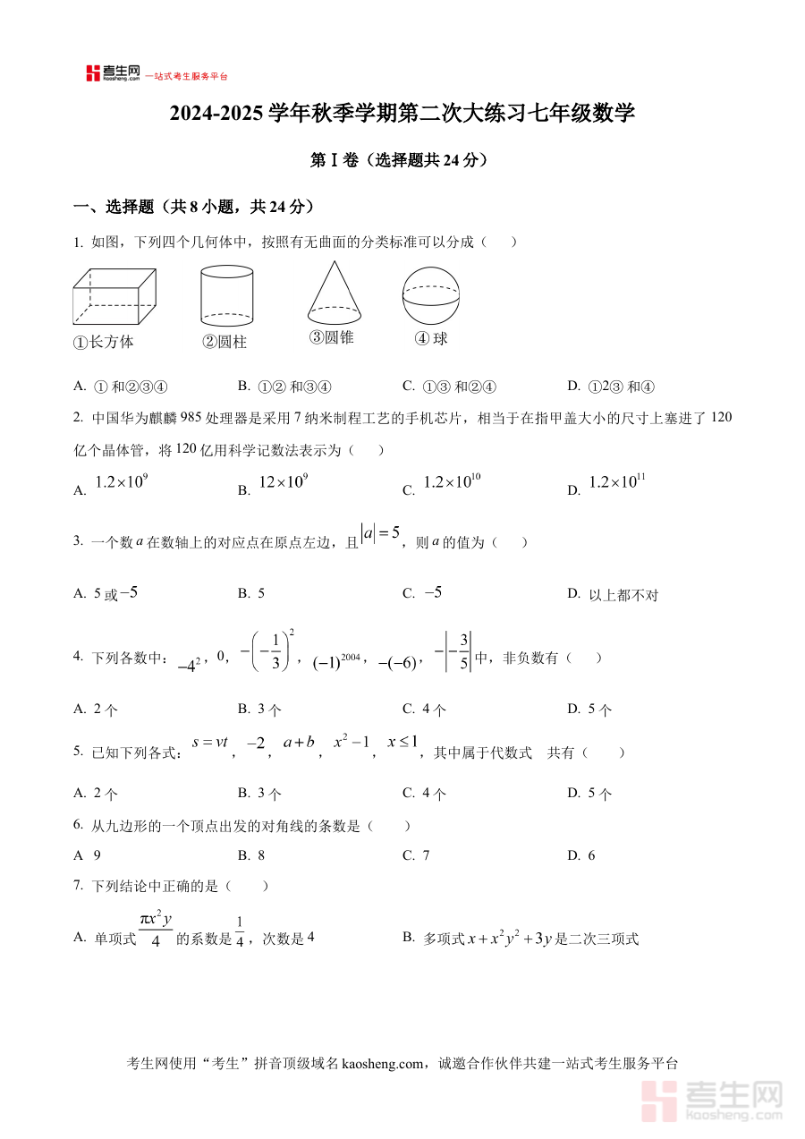 《精品解析:陕西省西咸新区沣东新城高新学校2024-2025学年七年级上学期第二次大练习数学试卷(原卷版)》是针对陕西省西咸新区沣东新城高新学校在2024至2025学年七年级上学期开展的第二次大练习数学考试所编制的原卷资料。该资料精准对应学校阶段性教学进度与检测需求,完整呈现了本次大练习考试的试卷原貌,为学生提供了与实际考试场景高度一致的练习载体,是七年级学生备考该次大练习考试的核心参考资料之一,能够帮助学生快速熟悉学校内部大练习的命题风格与考试形式。