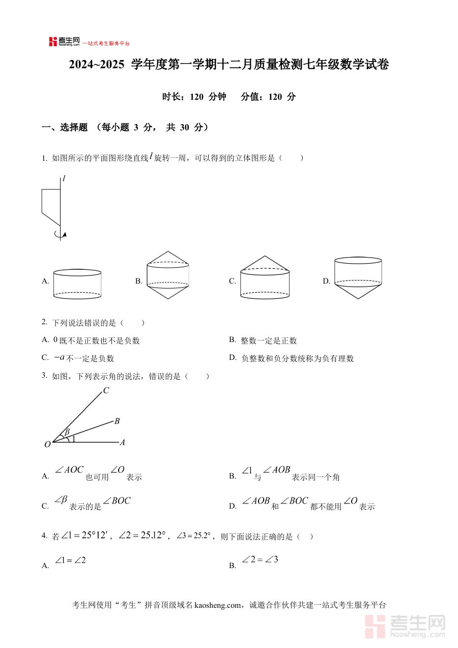 《精品解析:陕西省西安市航天第二中学2024-2025学年七年级上学期第二次月考数学(12月考)试卷(原卷版)》是针对陕西省西安市航天第二中学在2024至2025学年七年级上学期开展的第二次月考数学考试(于12月举行)所提供的原卷版备考资料。该资料精准匹配特定学校、学年、学期及考试节点的需求,为使用者提供与实际考试直接对应的资料参考,确保其能接触到贴合本次月考实际情况的内容框架,是了解该次考试形式与要求的重要载体,能帮助使用者快速建立对本次考试的整体认知。