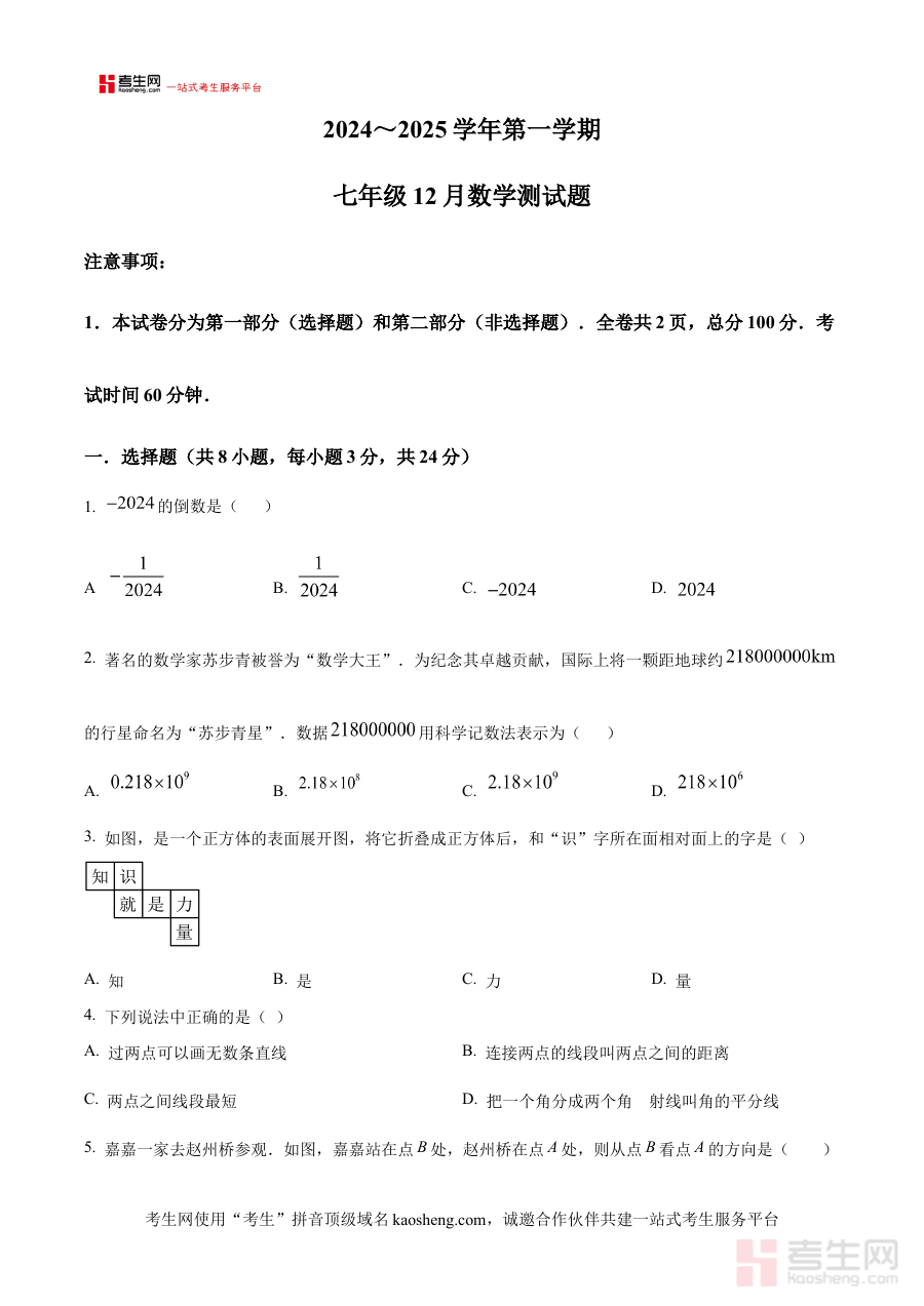 《精品解析:陕西省西安市西安交通大学附属中学2024-2025学年七年级上学期12月月考数学试题(原卷版)》是针对陕西省西安市西安交通大学附属中学2024至2025学年七年级学生上学期12月份月考的数学学科原始试卷资料。作为该校七年级上学期中期阶段重要的数学检测工具,它紧密贴合该校的教学进度与命题体系,能够为相关使用者提供与实际月考完全一致的试卷形式与考查方向参考,是适配该阶段数学学习备考需求的专业资料。