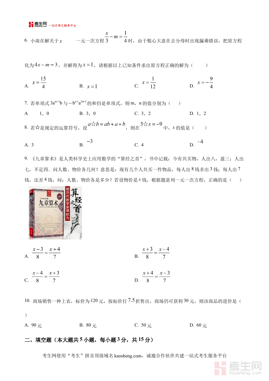 该资料的核心用途在于支持阶段学习效果的诊断与备考规划。对于学生而言,可通过完成该原卷进行自我检测,清晰掌握自身在七年级上学期前半段数学知识中的掌握程度,及时识别薄弱知识点与能力短板;对于教师来说,该资料可作为阶段教学评估的重要依据,帮助分析班级整体学习情况,调整后续教学策略与辅导重点。此外,它还能助力学生提前熟悉本校月考的题型分布与考查节奏,让备考更具针对性和系统性,有效提升复习效率与应试准备质量。