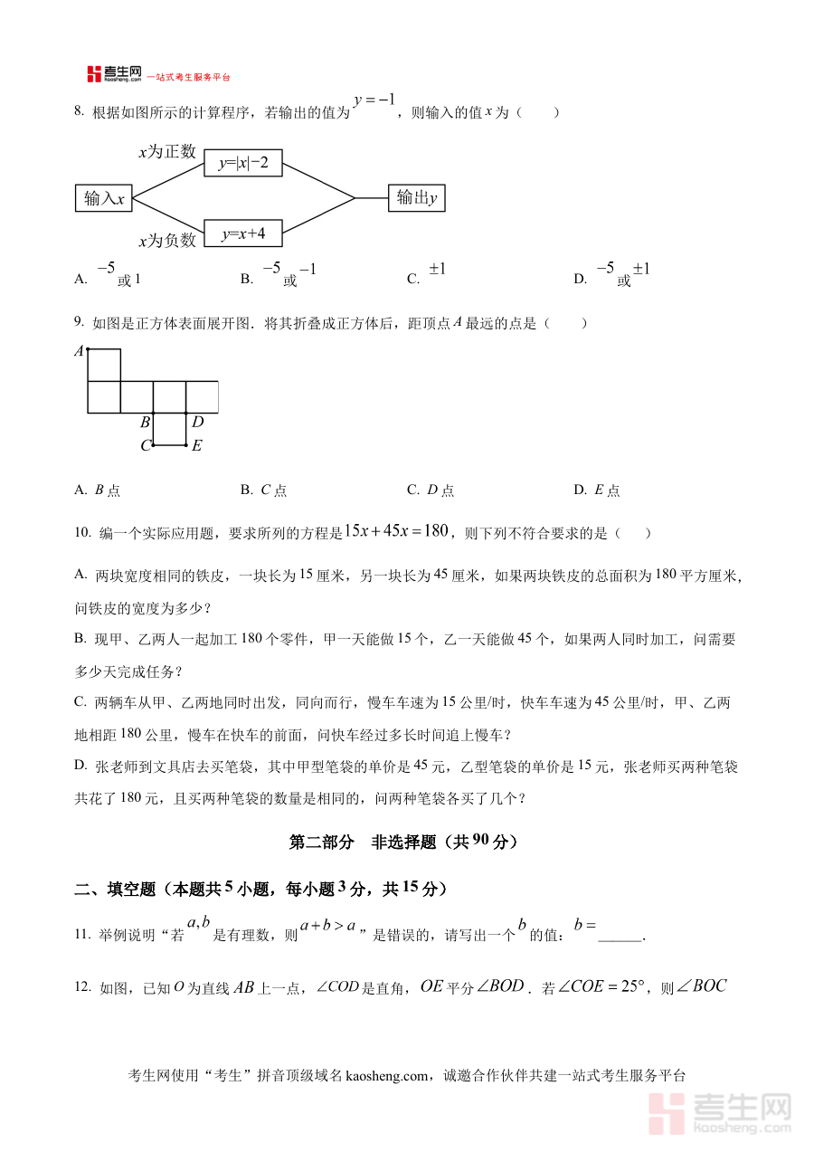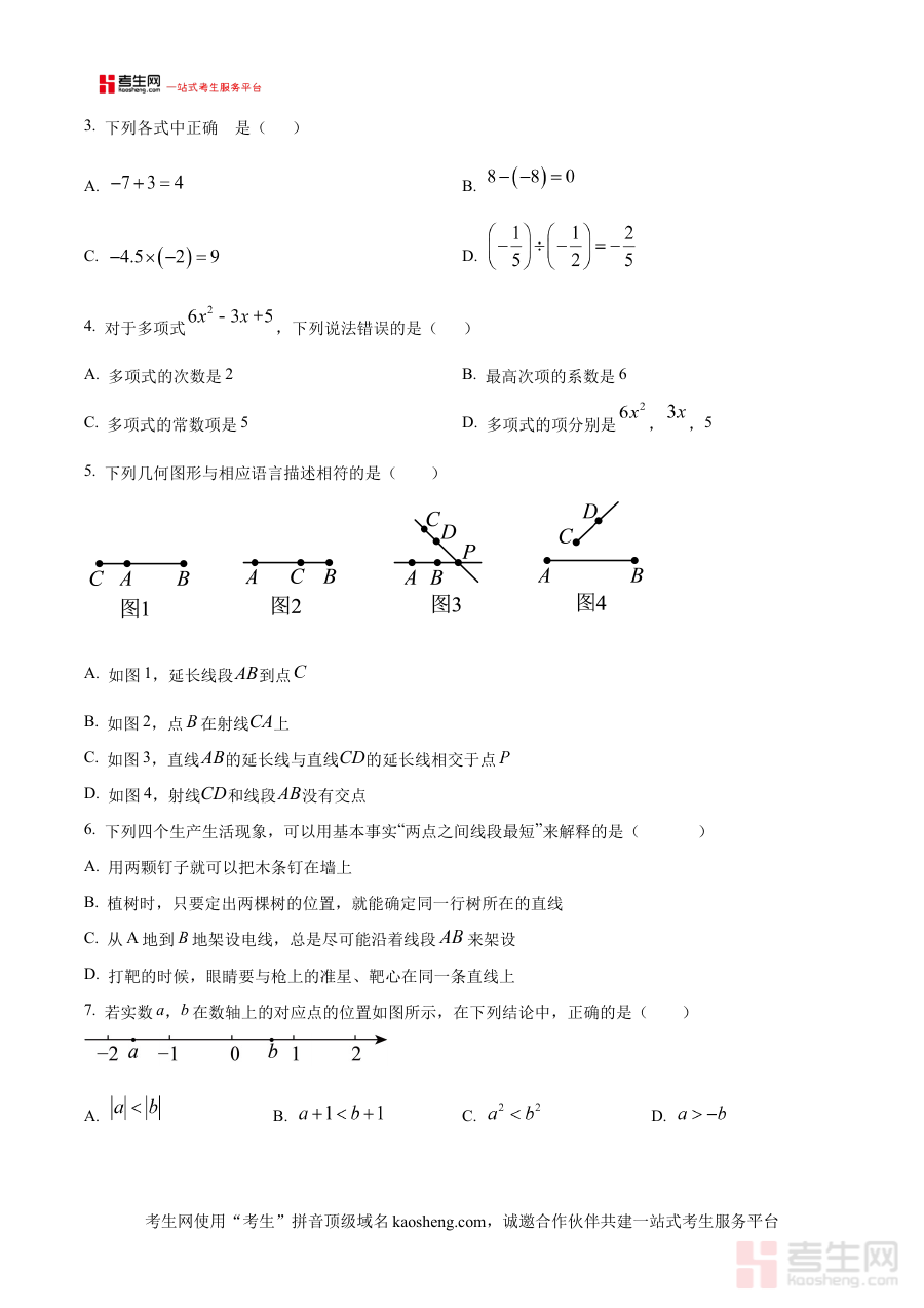 该资料作为原卷版试题资源,可用于七年级学生进行数学学科的阶段学情诊断,帮助教师了解学生在本学期中期阶段的知识掌握情况,同时也为学生后续的备考规划提供真实的测试场景参考,助力师生明确学习重点与改进方向。