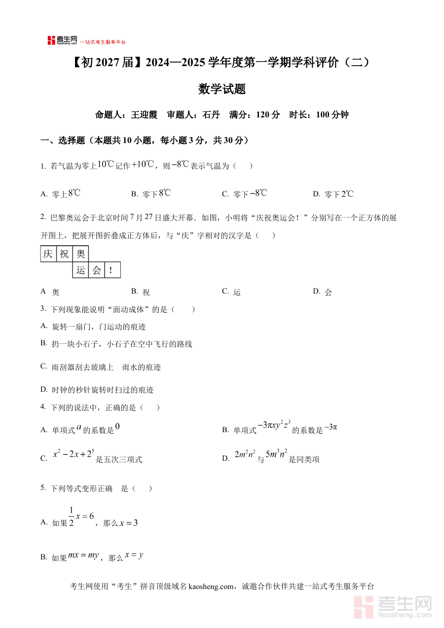 《精品解析:陕西省西安高新一中(陆港)2024-2025学年七年级上学期第二次月考数学试题(原卷版)》是针对陕西省西安高新一中陆港校区2024至2025学年七年级上学期开展的第二次月考数学科目的原卷类备考资料,依托该校区特定学年段的阶段性教学进度与考试安排,精准匹配七年级上学期中期阶段的数学学习成果检测需求,为使用者提供与实际考试场景高度一致的试题呈现形式,帮助使用者提前熟悉该校区月考的命题框架与试卷结构,是贴合该阶段数学学习目标的针对性备考资源。