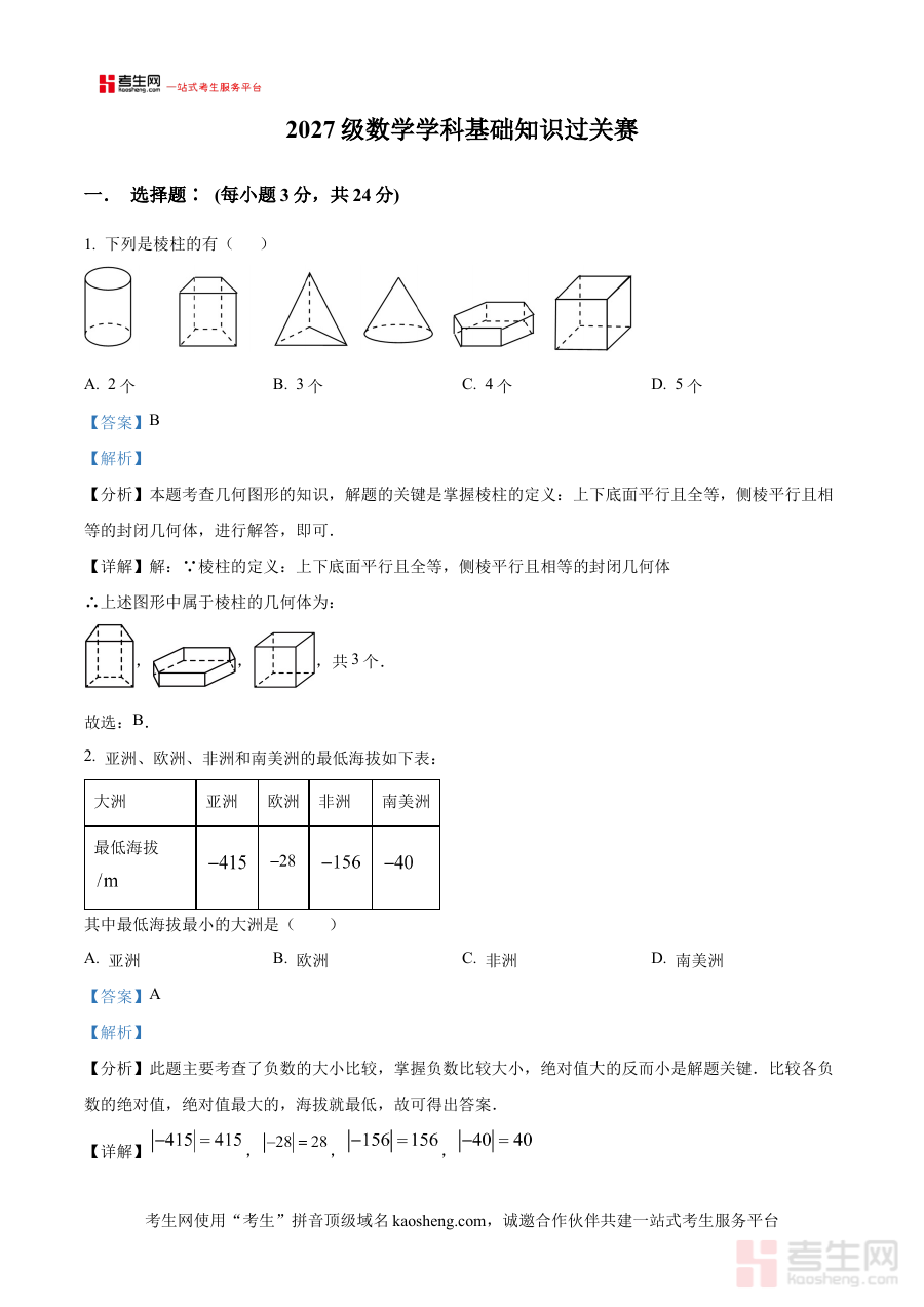 《精品解析:辽宁省沈阳市第一0七中学2024-2025学年七年级上学期基础知识过关赛数学试题(解析版)》是针对辽宁省沈阳市第一0七中学2024至2025学年七年级上学期数学学科基础知识过关赛的专用备考资料,明确覆盖该学年上学期的学习阶段,聚焦该校组织的基础知识过关赛这一考试类型,以解析版形式呈现试题相关内容,为相关人群提供针对性支持。