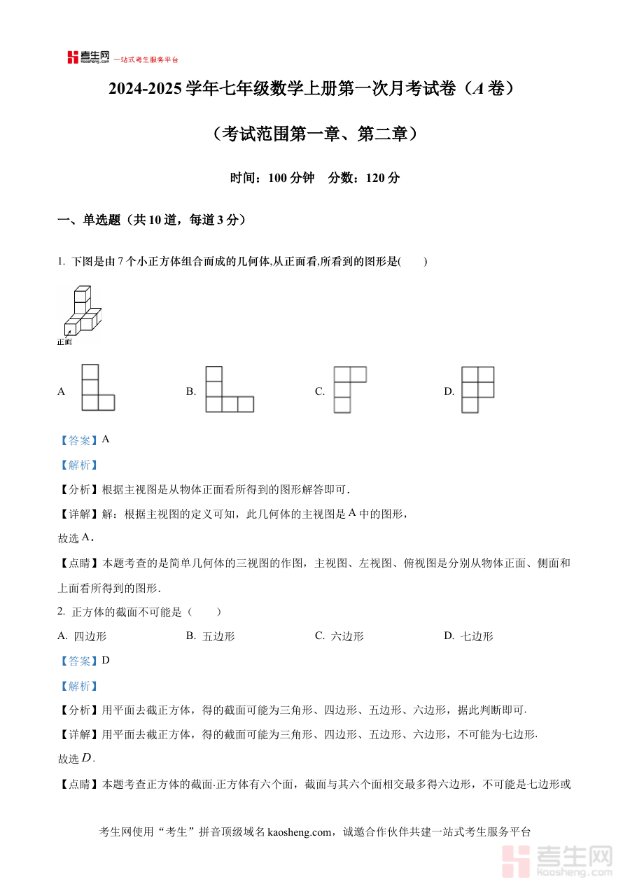 《精品解析:河南省郑州市2024-2025学年七年级上学期第一次月考数学试题(解析版)》是针对河南省郑州市2024至2025学年七年级上学期数学学科第一次月考的专业备考资料,聚焦该地区初中阶段初期数学学科的阶段性检测需求,依托当地教学进度与考试命题特点打造,为学生提供贴合本地学情的备考支持。