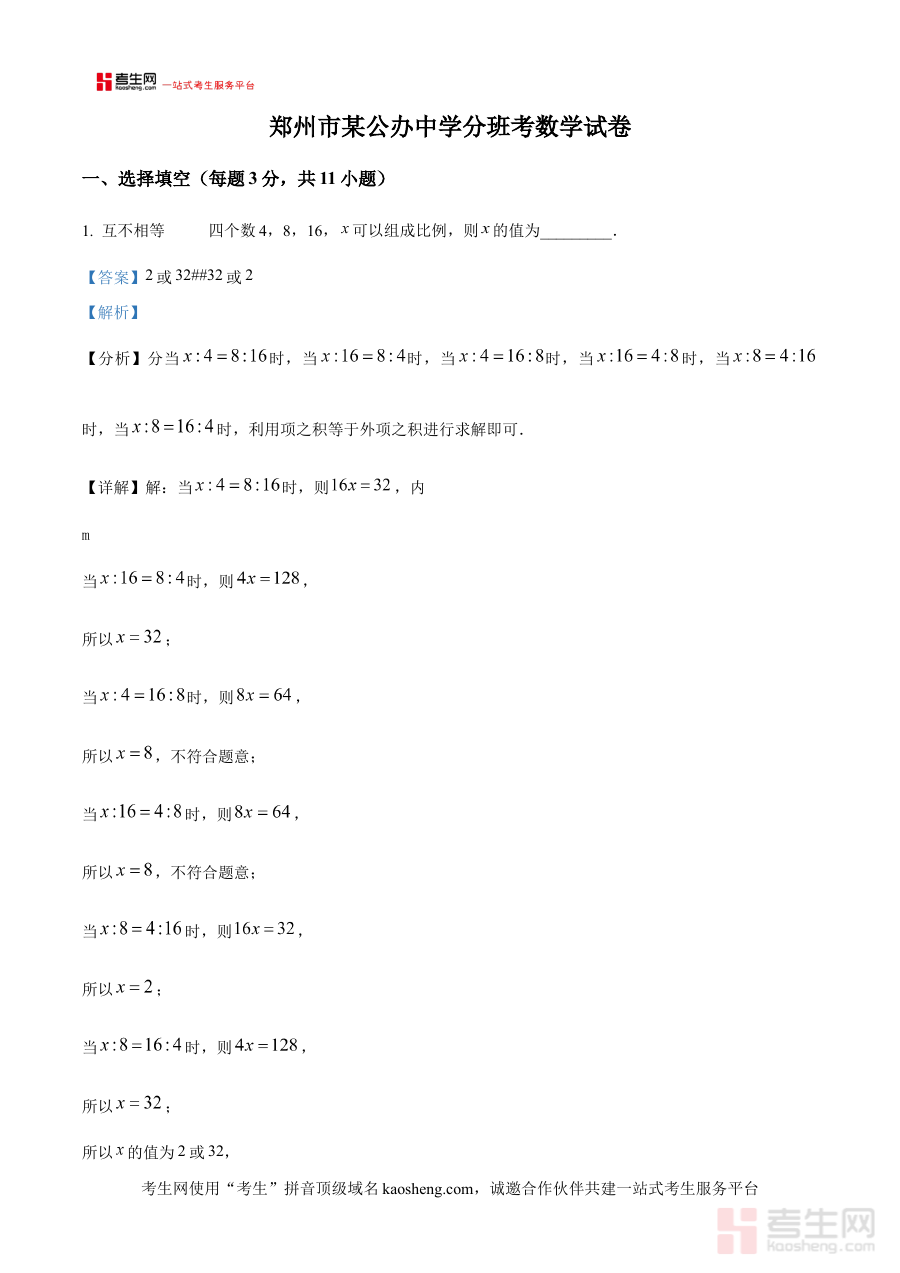 《精品解析:河南省郑州市惠济区外国语中学2024-2025学年上学期七年级分班考数学试卷(解析版)》是针对河南省郑州市惠济区外国语中学2024至2025学年第一学期七年级新生分班考试的数学学科备考资料,聚焦该特定学校与学年的分班考试需求,为考生提供贴合本地校情与考试要求的复习参考依据,助力使用者提前熟悉考试场景与评价体系。