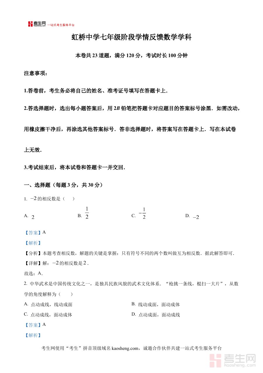 《精品解析:辽宁省沈阳市虹桥初级中学2024-2025学年上学期七年级10月份月考数学试卷(解析版)》是对应辽宁省沈阳市虹桥初级中学2024-2025学年上学期七年级10月份数学月考的专项解析资料,精准匹配该阶段数学学科的阶段性考查需求,为相关师生提供权威的考试内容解析服务。