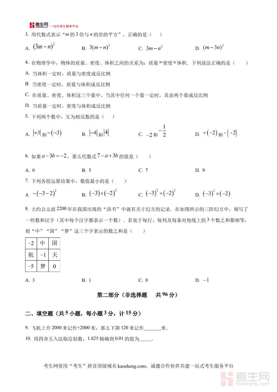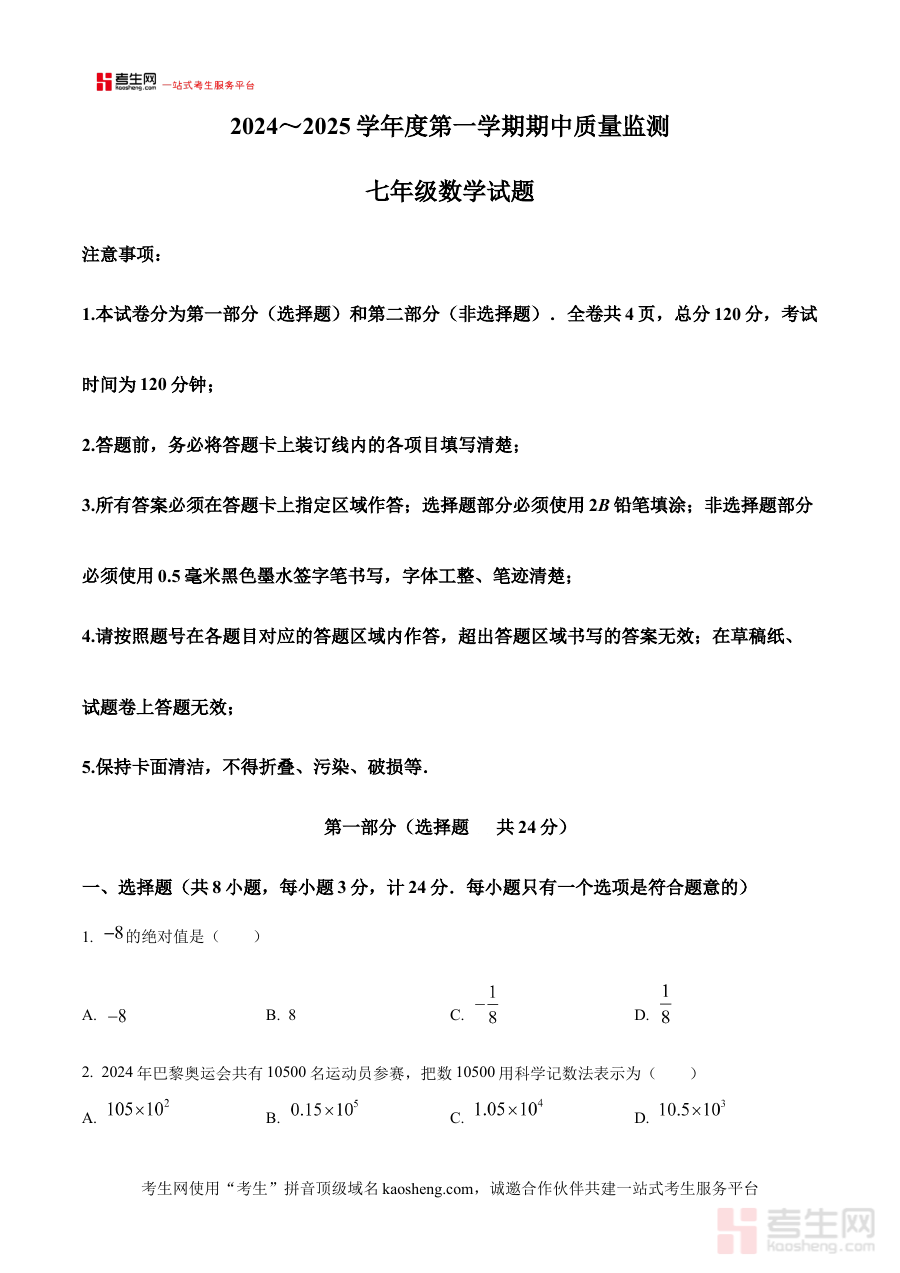 《精品解析:陕西省西安市临潼区2024-2025学年七年级上学期期中考试数学题(原卷版)》是针对陕西省西安市临潼区2024至2025学年七年级上学期数学期中考试开发的备考资料,精准对应该地区该学段期中阶段的考试场景与要求,为使用者提供与实际考试形式完全一致的原卷内容,帮助其提前熟悉考试的整体结构与呈现方式,是贴合本地期中数学考试需求的重要资源。