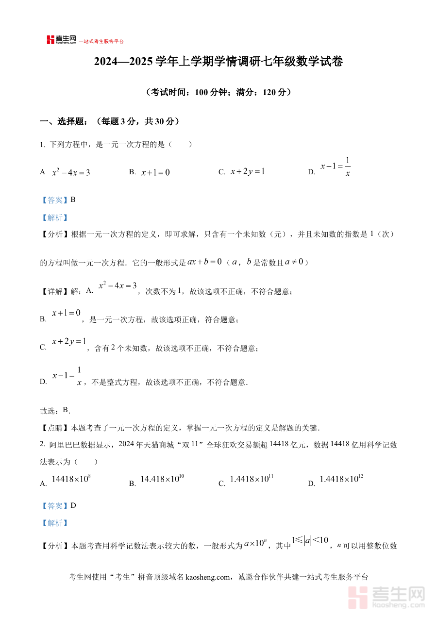 《精品解析:河南省郑州市第七十三中学2024-2025学年七年级上学期第二次调研数学试卷(12月份)(解析版)》是针对河南省郑州市第七十三中学2024-2025学年七年级上学期12月份第二次调研数学考试的配套备考资料,聚焦该校该阶段内部阶段性调研测试需求,为相关师生提供针对性的解析支持。