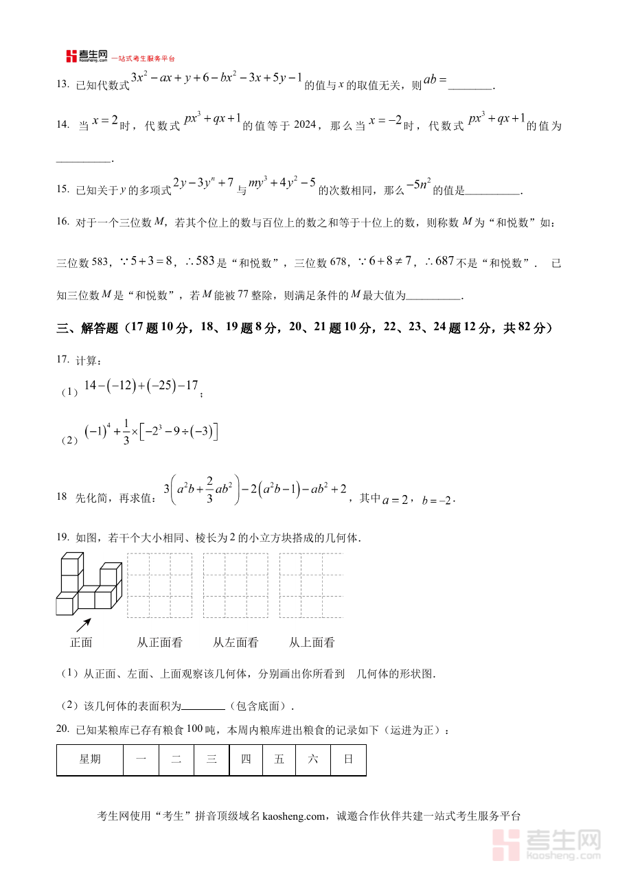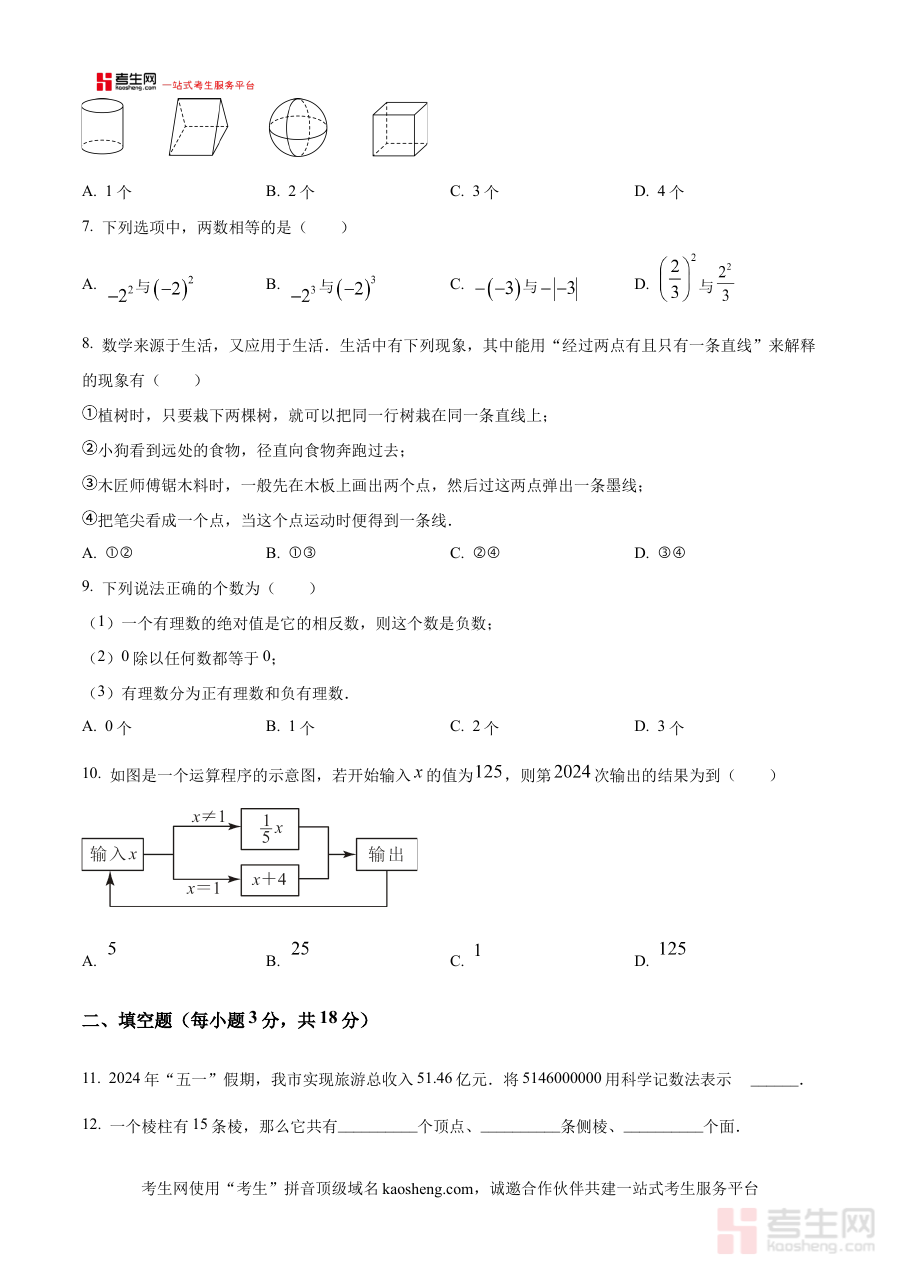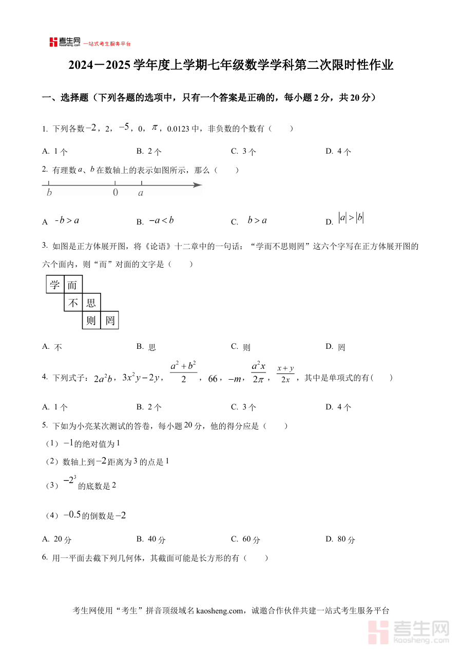 《精品解析:辽宁省沈阳市南昌初级中学2024-2025学年七年级上学期期中考试数学试卷(原卷版)》是辽宁省沈阳市南昌初级中学针对2024-2025学年七年级上学期期中考试推出的数学学科原卷版备考资料,准确对应该学年该阶段的数学教学进度与考试要求,能够为师生提供贴合学校实际教学场景的阶段性考试参考依据,助力师生把握期中考试的核心方向与考查重点。