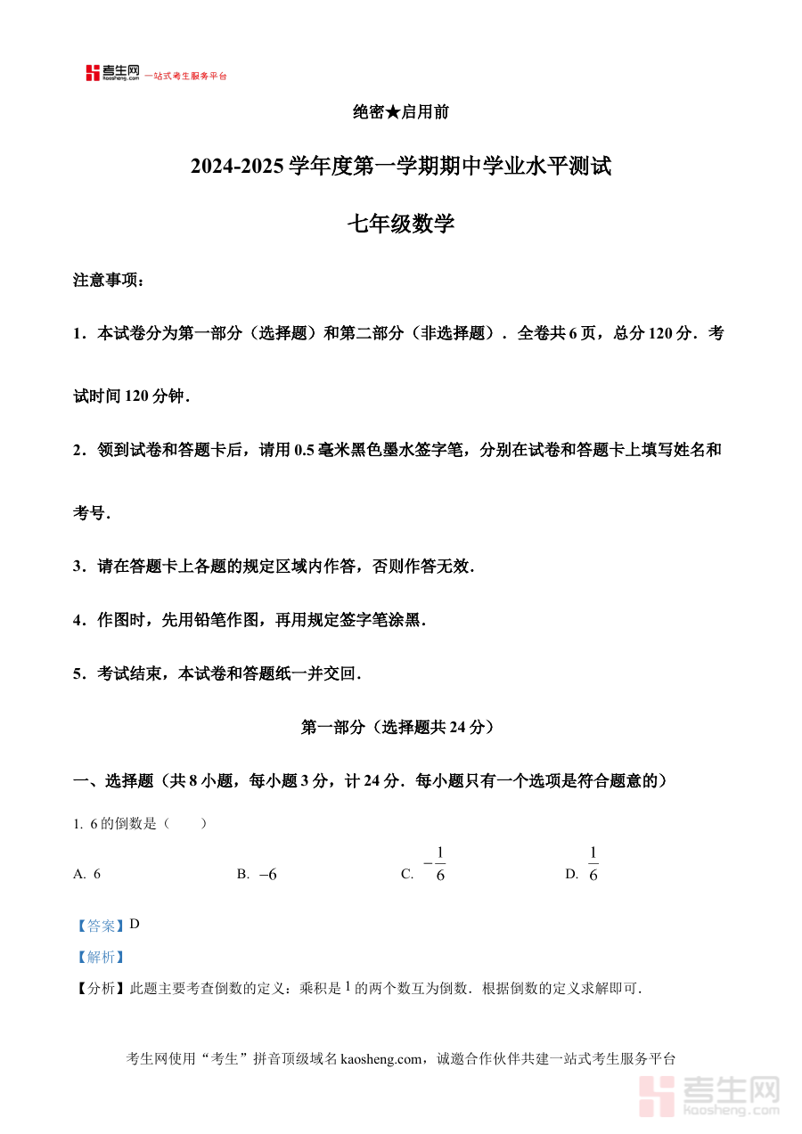 《精品解析:陕西省西安市新城区西安市八十三集团2024-2025学年上学期七年级数学期中考试试卷(解析版)》是针对陕西省西安市新城区西安市八十三集团在2024-2025学年上学期组织的七年级数学期中考试所开发的配套解析资料。它明确覆盖了特定学年、学期、学段、学科及考试类型,并结合所属区域与集团的教学背景,为该考试的备考提供了针对性极强的专业支持,是聚焦区域化、集团化期中数学考试的精准辅助资源。