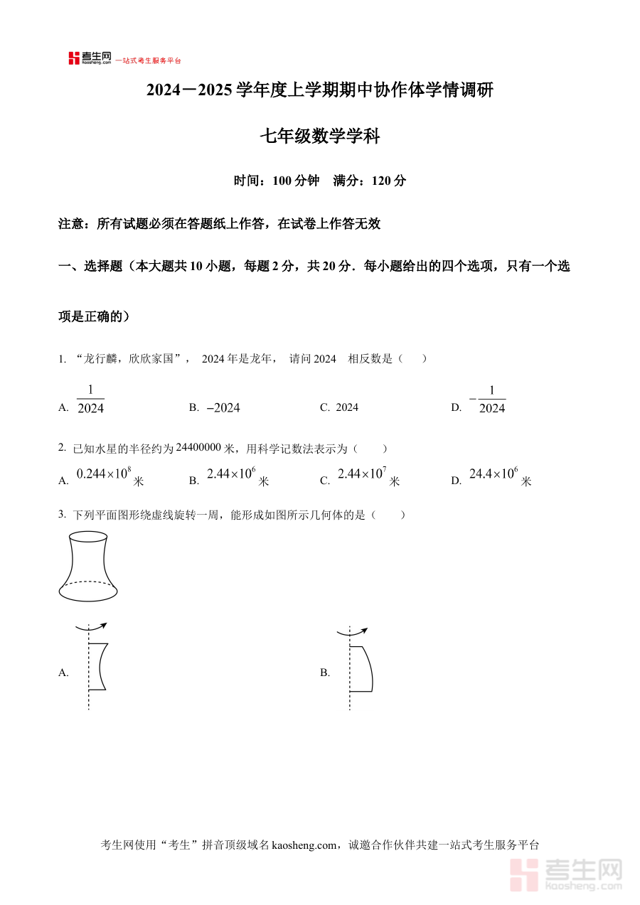 《精品解析:辽宁省沈阳市第七中学2024-2025学年七年级上学期期中协作体学情调研数学试卷(原卷版)》是针对辽宁省沈阳市第七中学及协作体学校在2024-2025学年七年级上学期期中阶段开展的学情调研数学考试所编制的备考资料。该资料贴合七年级上学期期中这一关键学习节点,匹配协作体学校共同的教学进度与学情检测标准,为相关考试的准备提供直接且贴合实际需求的参考依据。