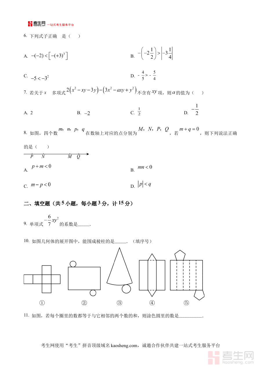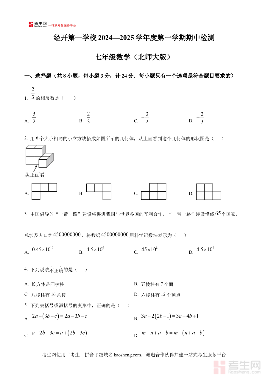 《精品解析:陕西省西安市经开第一学校2024-2025学年七年级上学期数学期中考试试题(原卷版)》是针对陕西省西安市经开第一学校2024至2025学年七年级上学期数学学科期中考试设计的备考资料,精准匹配该校该学年学期的数学教学进度与考试标准,为使用者提供与实际考试一致的原卷内容参考,助力使用者直观了解本次期中考试的试卷结构、考查方向及呈现形式。