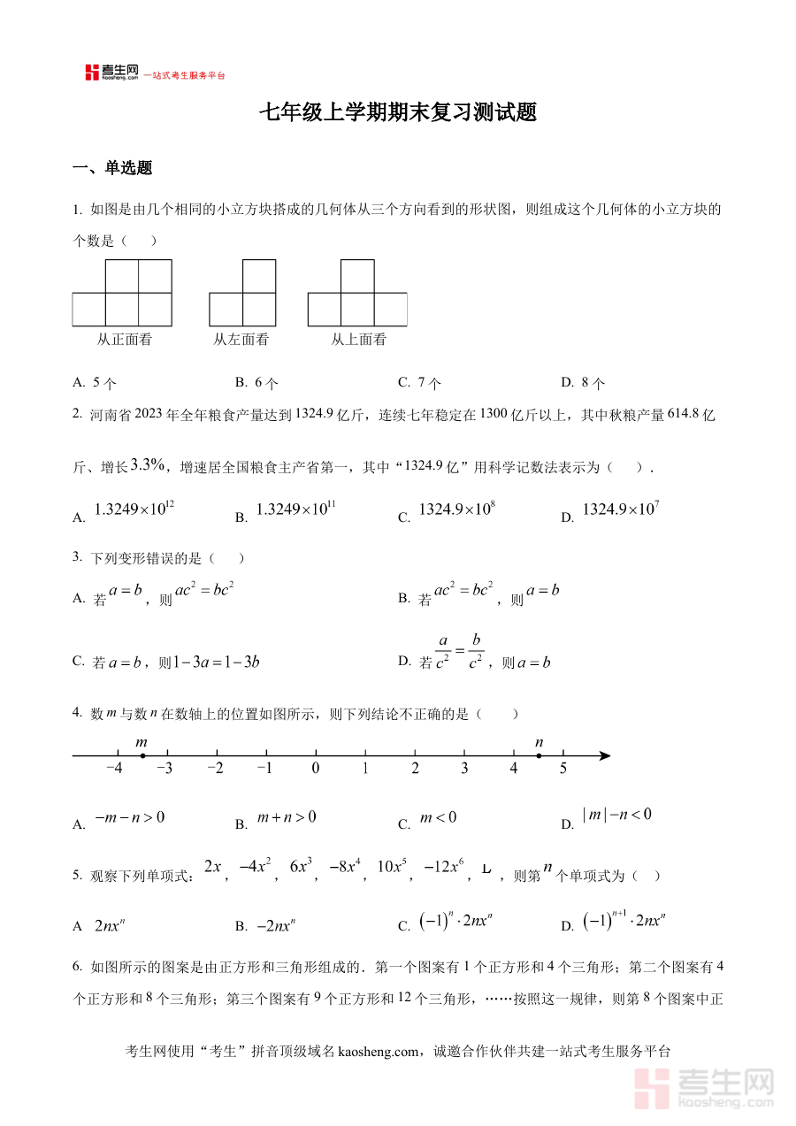 《精品解析:2024-2025学年七年级上学期北师大版数学期末复习测试卷(原卷版)》是面向2024至2025学年七年级上学期使用北师大版数学教材群体的期末备考专用资料。该资料以原卷版形式呈现,严格贴合七年级上学期数学期末考查的核心方向与结构要求,为师生提供了与期末测试场景高度一致的练习素材,是学期末复习阶段的重要辅助工具。