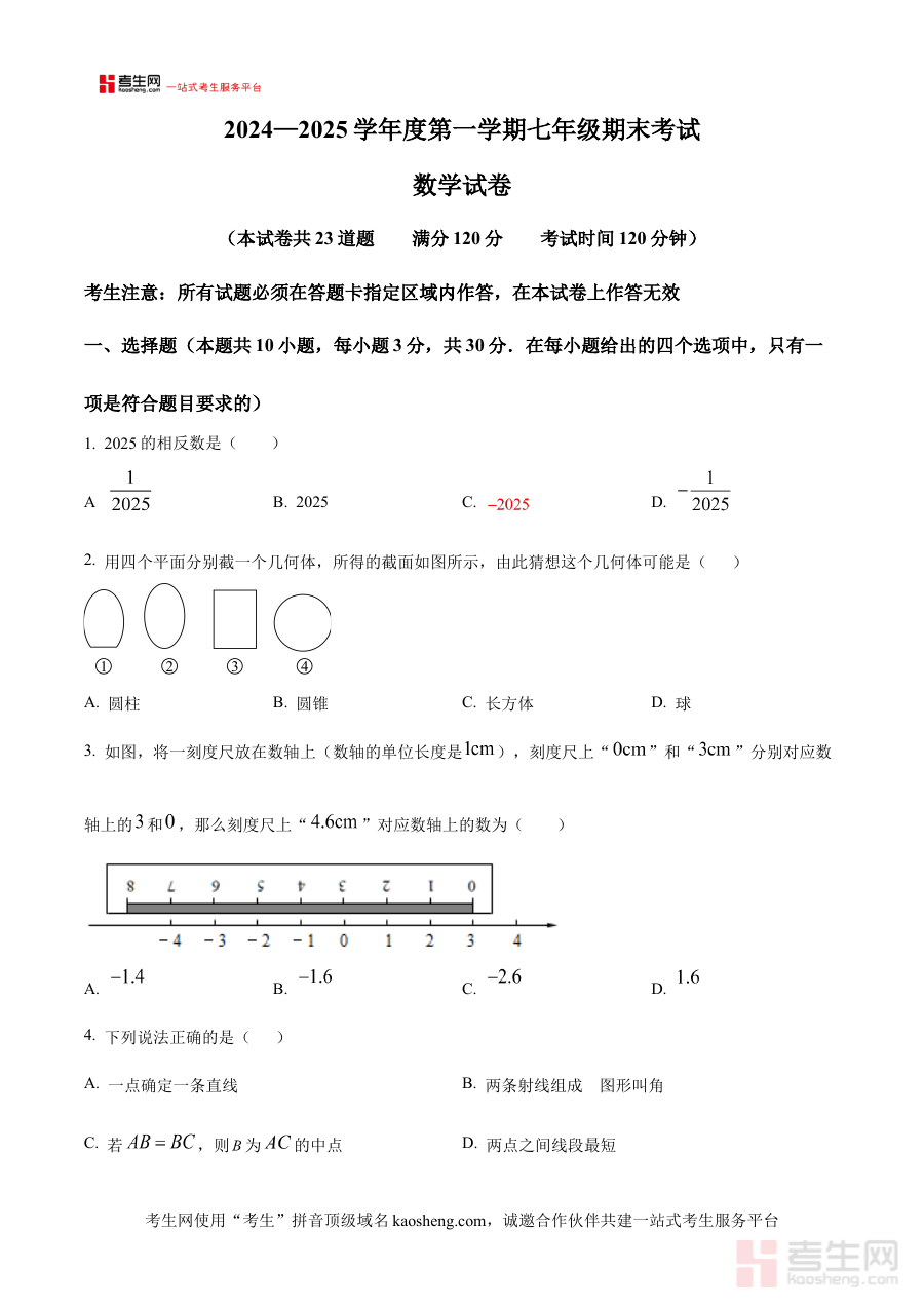《精品解析:辽宁省沈阳市法库县2024-2025学年七年级上学期1月期末数学试题(原卷版)》是针对辽宁省沈阳市法库县2024至2025学年七年级第一学期1月期末数学考试的备考资料,准确对应该地区该学年的期末检测节点,为学生提供贴合本地教学进度与考试要求的练习载体。