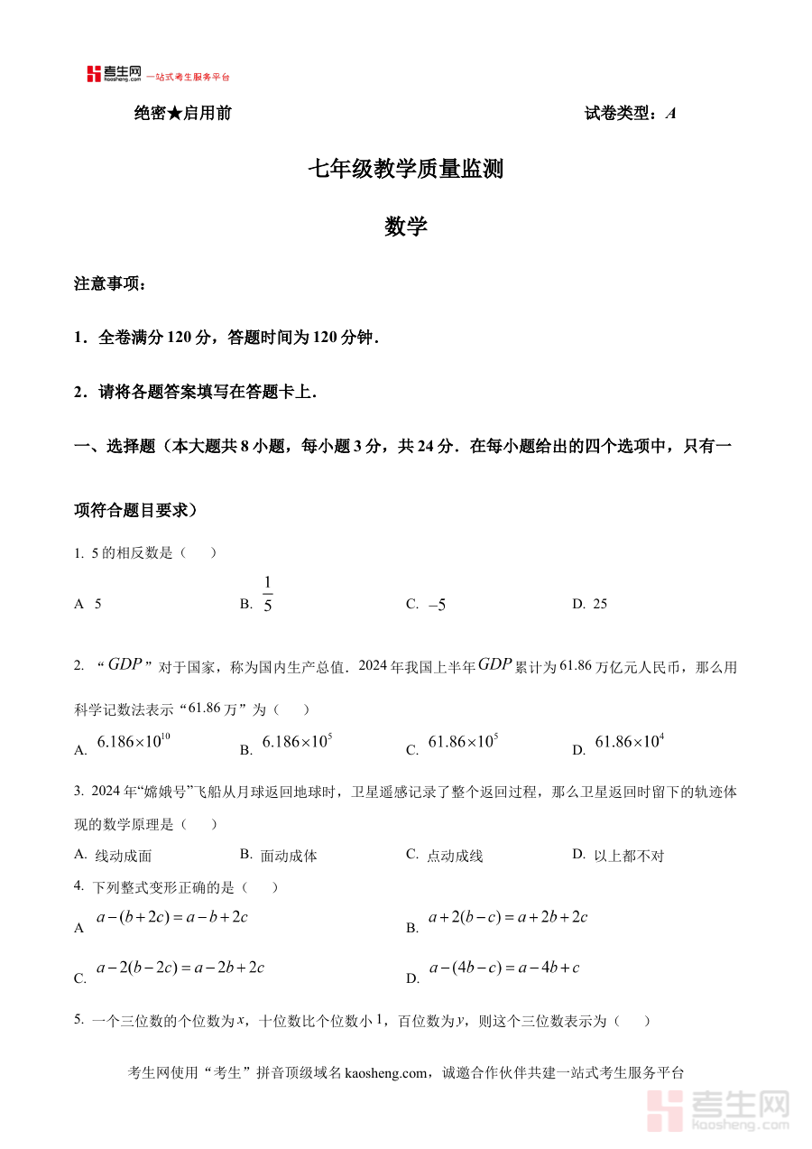 《精品解析:陕西省西安市长安区2024-2025学年七年级上学期期中数学试题(原卷版)》是针对陕西省西安市长安区2024至2025学年第一学期七年级数学期中阶段考试的配套备考资料,精准贴合该区域七年级数学教学进度与期中检测要求,能够为使用者提供与本地期中考试直接相关的原卷内容参考。该资料依托长安区本地教学实际与期中命题趋势,旨在还原真实考试场景,帮助使用者提前熟悉期中数学考试的整体框架与考查范围,为后续的复习备考奠定基础。
