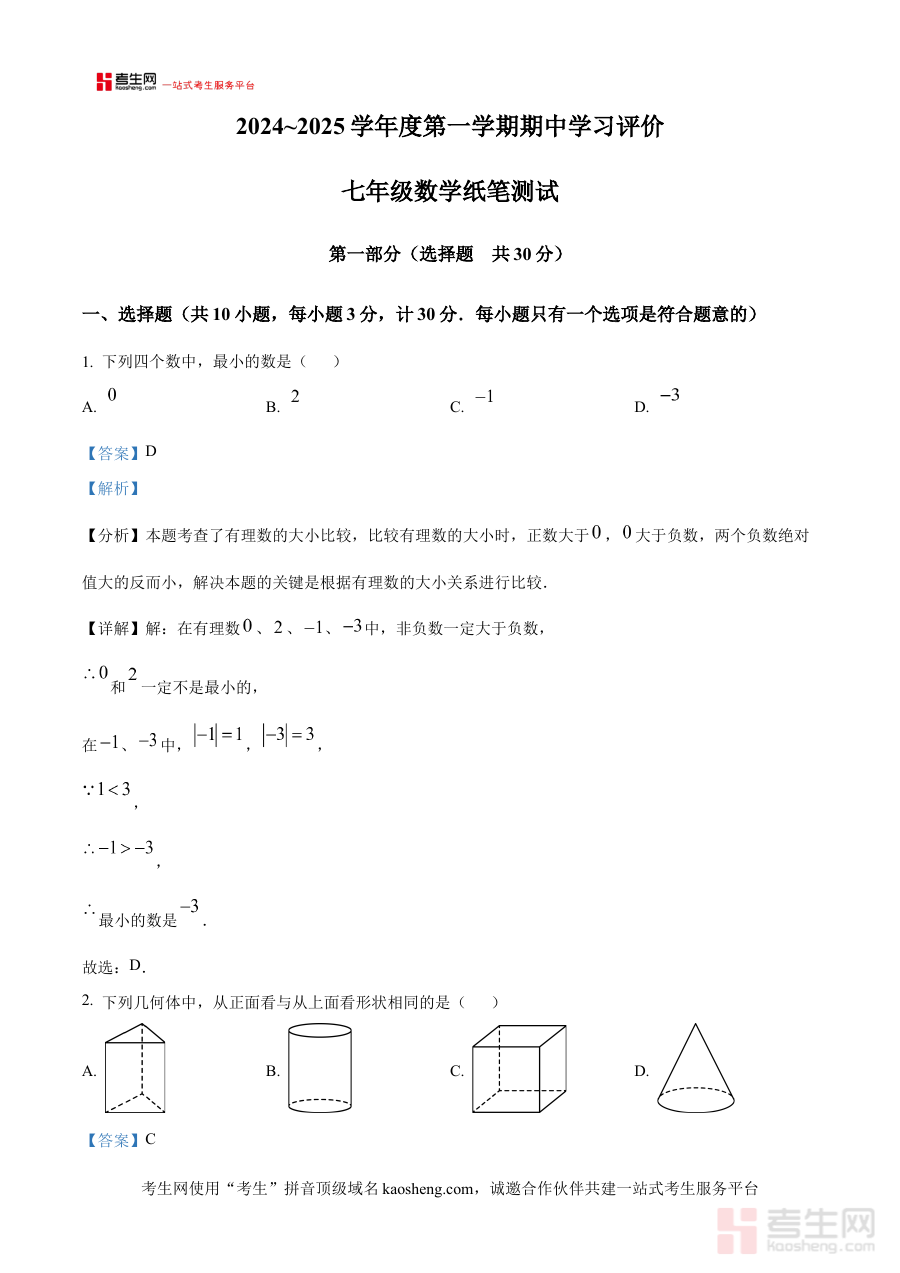 《精品解析:陕西省西安市长安区2024-2025学年上学期七年级期中数学试卷(解析版)》是针对陕西省西安市长安区特定区域、特定学年学期及特定学段学科的期中数学考试备考资料。该资料聚焦长安区七年级学生在2024-2025学年上学期的期中数学测试需求,依托当地期中数学考试的背景框架,为使用者提供带有详细解析的试卷内容,旨在贴合区域教学进度与考试要求,助力相关群体做好期中数学考试的准备工作。