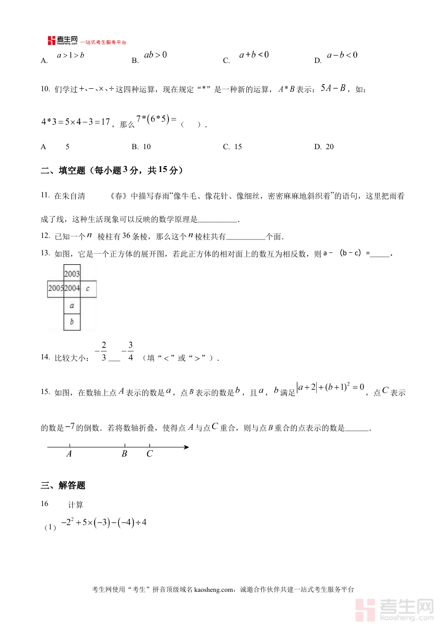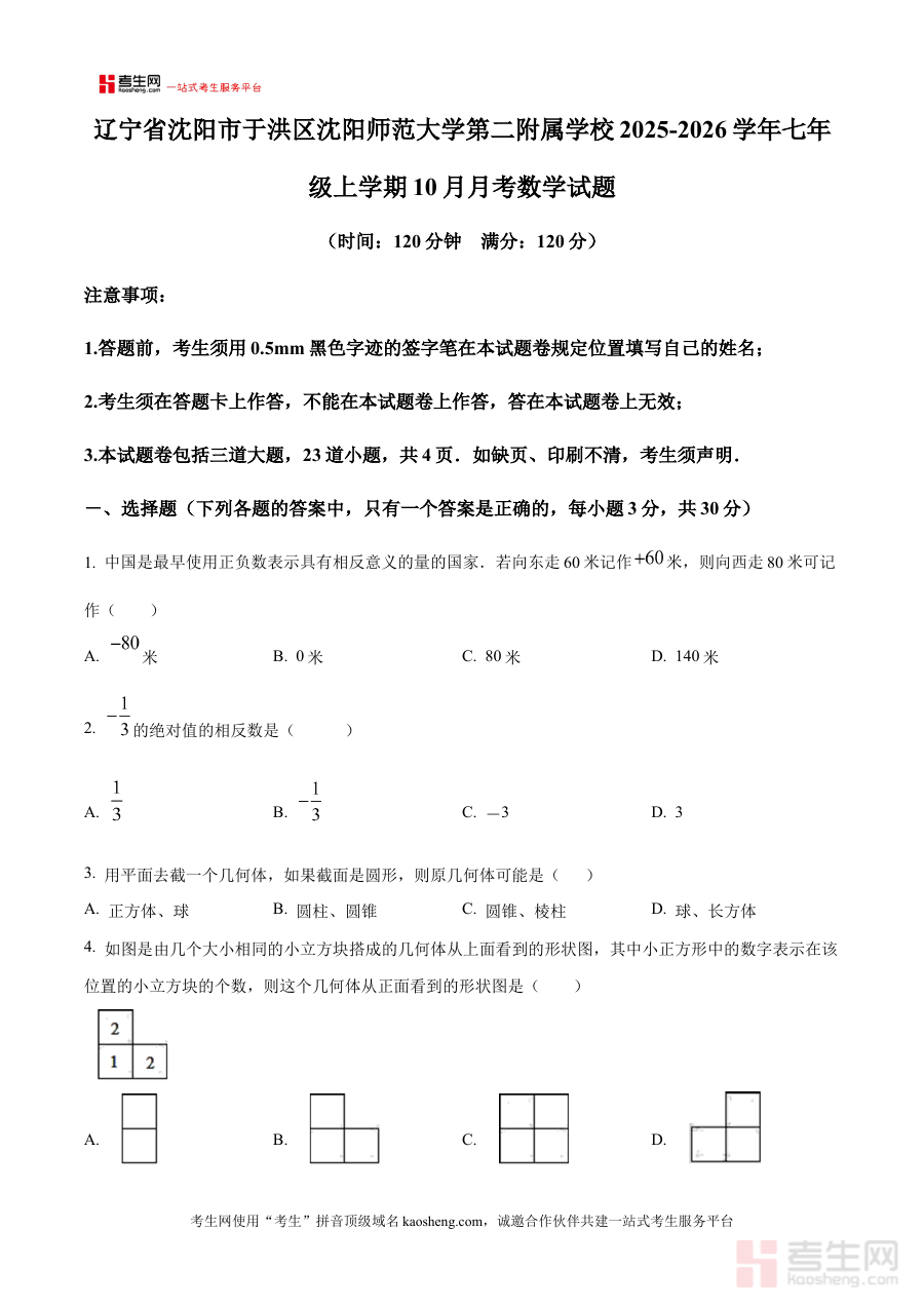 《精品解析:辽宁省沈阳市于洪区沈阳师范大学第二附属学校2025-2026学年七年级上学期10月月考数学试题(原卷版)》是针对2025-2026学年辽宁省沈阳市于洪区沈阳师范大学第二附属学校七年级上学期10月数学月考的配套备考资料,聚焦该阶段数学学科的阶段性考试需求,为师生提供贴合校考实际的原卷内容参考。