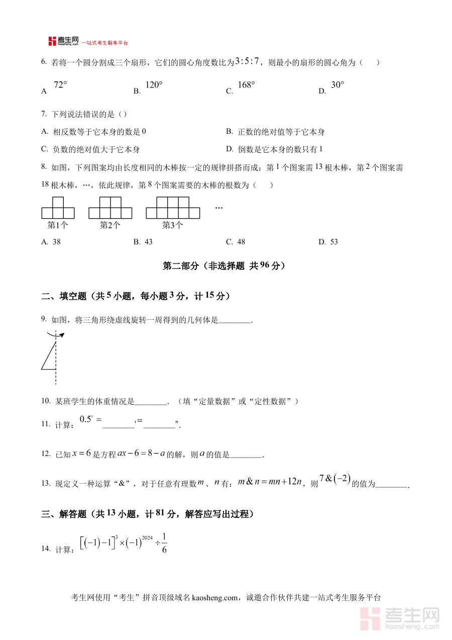 《精品解析:陕西省西安市新城区西光中学2024--2025学年七年级上学期期末考试数学卷 (原卷版)》是面向陕西省西安市新城区西光中学特定学年学期的数学期末备考资料。其覆盖时间范围为2024至2025学年上学期,对应的考试类型为七年级数学期末考试,作为原卷版资料,它完整还原了该考试的原始试卷形态,包括试卷整体结构、题量安排等核心要素,为备考该期末考试的学生提供了与实际考试高度一致的练习载体,是了解考试要求和形式的重要参考。