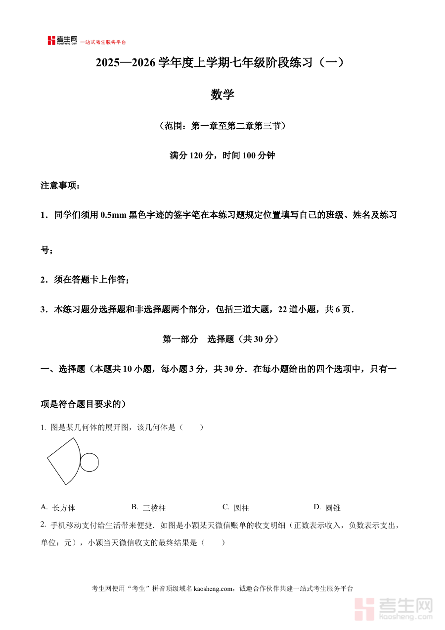《精品解析:辽宁省沈阳市私立联合体2025-2026学年七年级上学期阶段练习(一)10月月考数学试卷(原卷版)》是针对辽宁省沈阳市私立联合体2025-2026学年七年级上学期10月月考数学科目的阶段性备考资料,聚焦该联合体同期七年级学生的数学学习进度与阶段检测需求,为相关教学与备考活动提供对应考试的原卷参考。