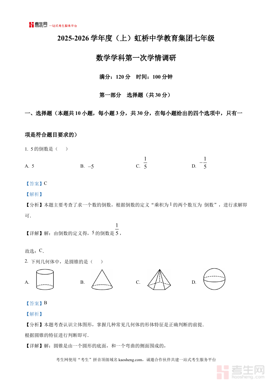 《精品解析:辽宁省沈阳市虹桥教育集团2025-2026学年上学期第一次月考七年级数学试题(解析版)》是针对辽宁省沈阳市虹桥教育集团2025-2026学年上学期七年级数学第一次月考的专业备考资料,紧密贴合该区域教育集团的阶段性考试要求,为使用者提供符合本地教学实际的资源支持。