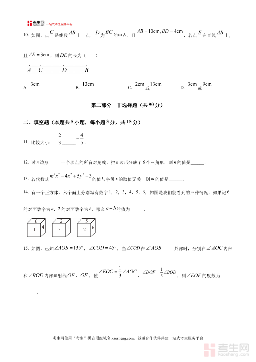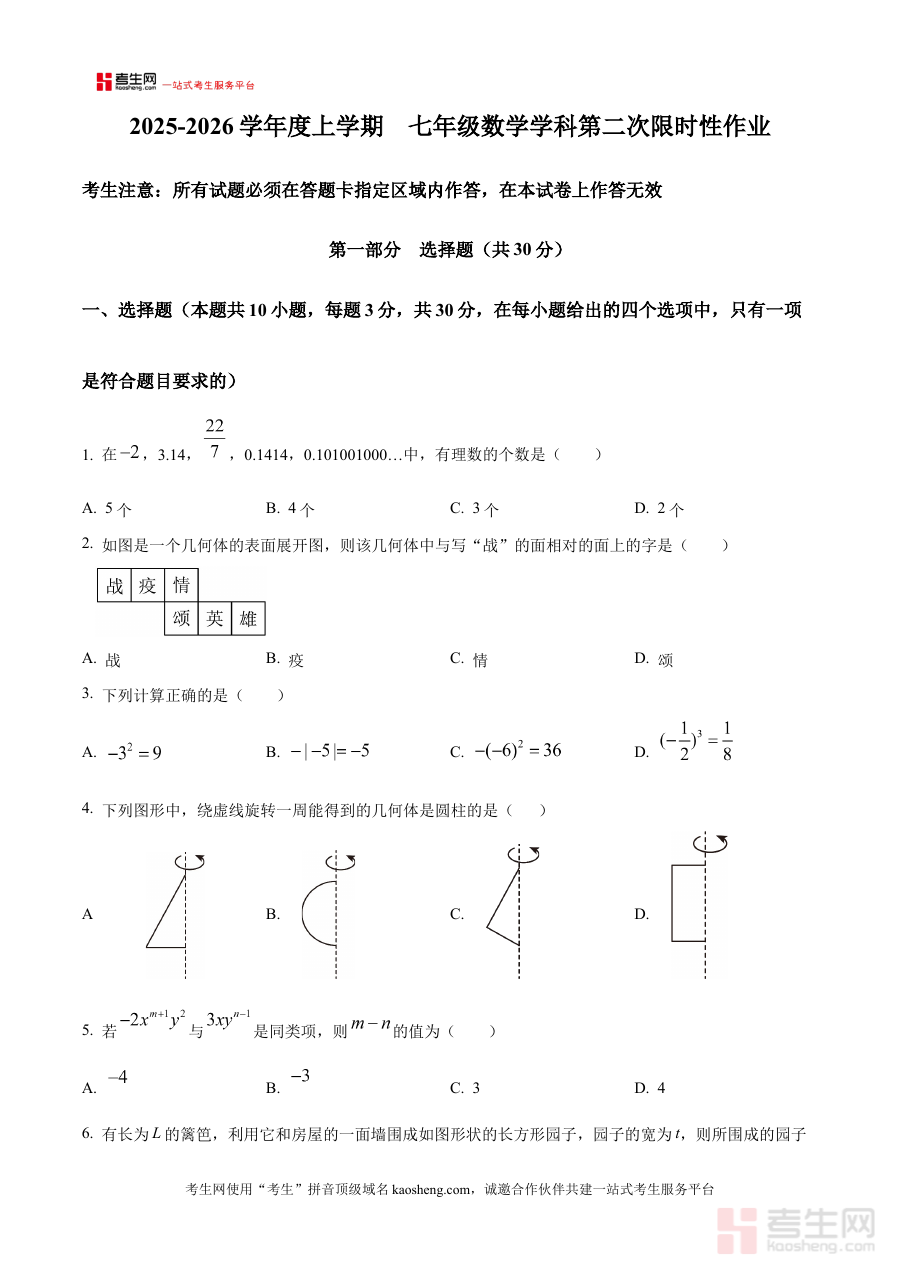 《精品解析:辽宁省沈阳市南昌初级中学2025-2026学年上学期七年级期中数学试题(原卷版)》是针对辽宁省沈阳市南昌初级中学2025至2026学年第一学期七年级学生期中数学考试的官方原卷形式备考资料。该资料严格贴合该校七年级数学期中检测的命题范围与考试要求,能够精准反映该阶段数学学科的教学重点与考核方向,为学生提供与实际考试完全一致的试卷呈现形式,帮助学生提前熟悉考试场景与试卷结构。