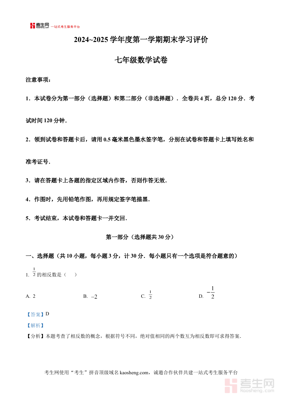 《精品解析:陕西省西安市长安区2024-2025学年上学期七年级数学期末试卷 (解析版)》是针对陕西省西安市长安区2024至2025学年第一学期七年级数学期末阶段检测的专业备考资料。该资料依托当地期末考试的命题方向与区域教学要求设计,以解析版形式呈现,为使用者提供了与长安区七年级数学期末考情高度契合的学习参考。作为区域针对性强的期末备考资源,它能够帮助使用者快速把握当地期末数学考查的核心方向与趋势,为后续的系统复习规划提供清晰依据。