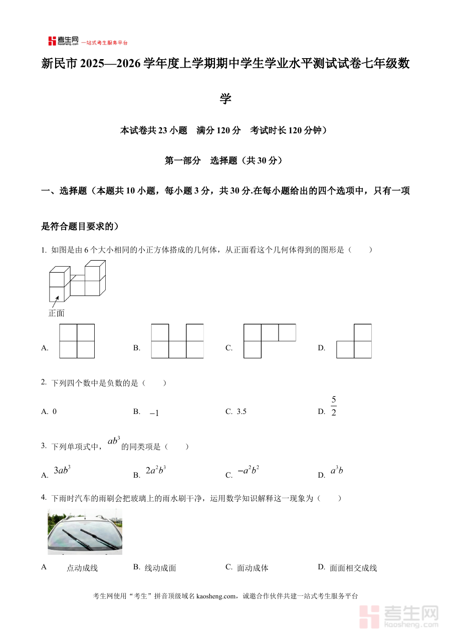 《精品解析:辽宁省沈阳市新民市2025-2026学年七年级上学期期中数学试卷(原卷版)》是针对辽宁省沈阳市新民市特定学年及学段的数学期中检测备考资料,精准对应2025-2026学年七年级上学期的期中数学考试需求,能够真实呈现该地区该阶段数学学科期中检测的命题框架与考查方向,为使用者提供贴合当地教学实际和考试要求的备考依据,帮助使用者快速把握该地区期中数学考试的核心特点。
