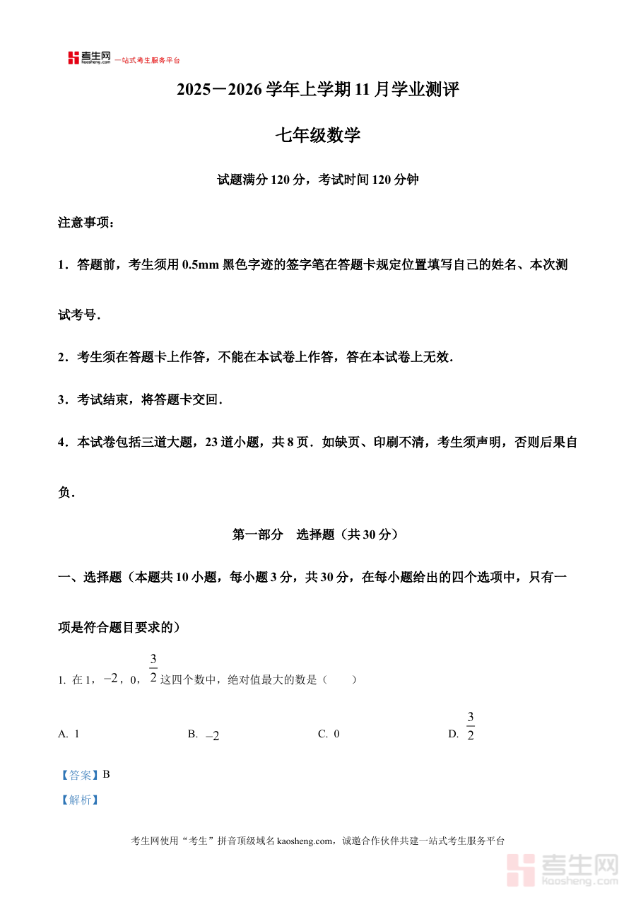 本资料主要适用于辽宁省沈阳市浑南区2025-2026学年上学期的七年级学生,也可供该地区的初中数学教师及学生家长使用;其解析版的形式能帮助使用者深入理解考试相关内容,为阶段检测的备考提供清晰指引,具有较高的实用价值。