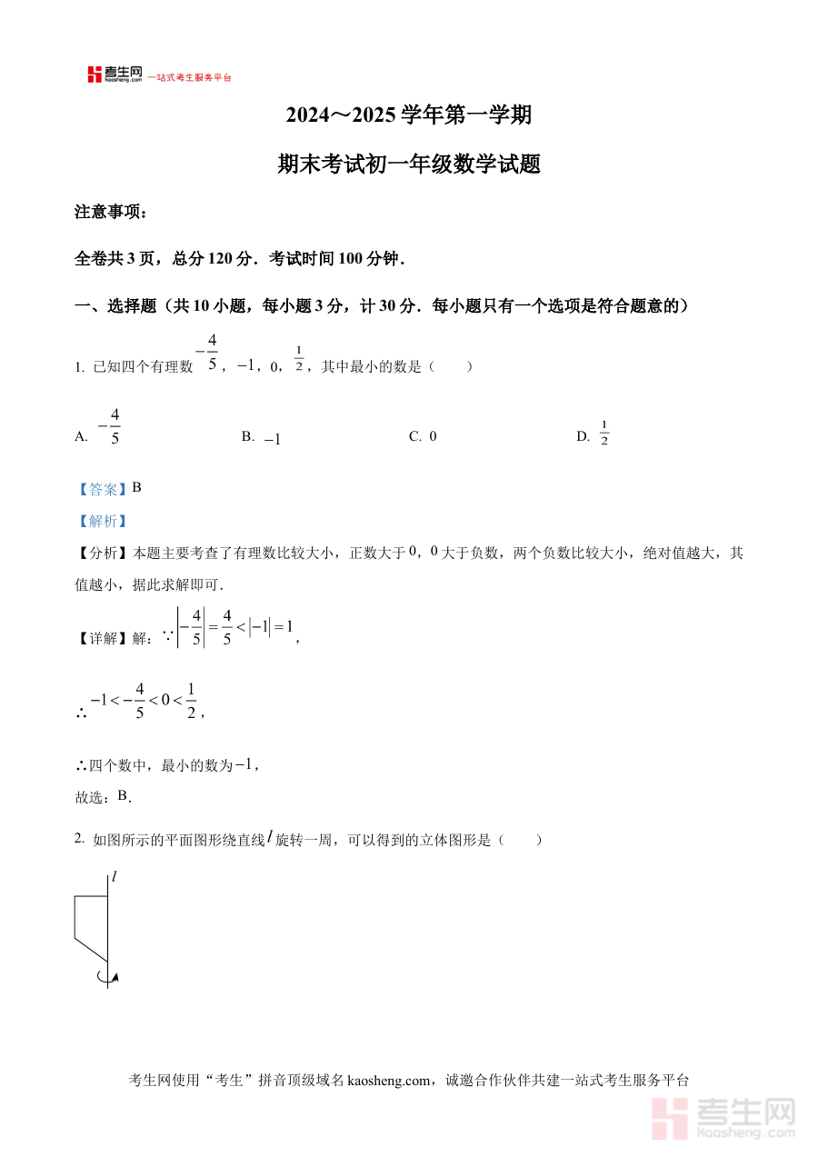 《精品解析:陕西省西安市雁塔区西交大附中2024-2025学年上学期七年级期末数学试题(解析版)》是针对陕西省西安市雁塔区西交大附中2024至2025学年第一学期七年级期末数学考试编制的专业备考资料。该资料依托该校七年级数学期末检测的实际需求,结合学年上学期的教学进度与阶段学习目标,为学生提供了与校内考试高度匹配的参考内容。作为期末阶段的重要备考资源,它能够帮助学生提前熟悉校内期末数学考试的整体框架与考查方向,为后续的复习规划提供清晰的指引。