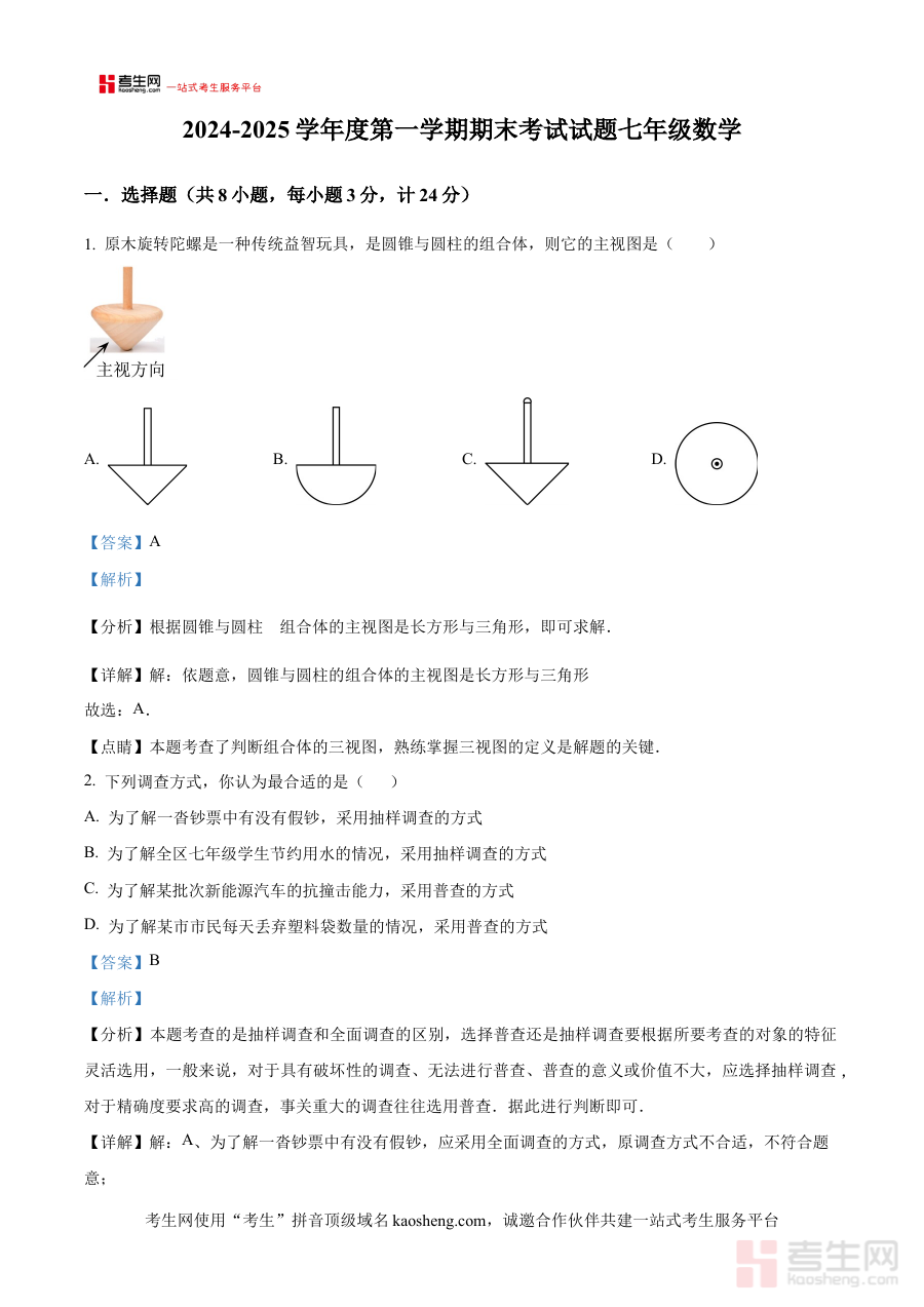 《精品解析:陕西省西安市高新一中2024-2025学年上学期期末考试七年级数学试题(解析版)》是针对陕西省西安市高新一中2024至2025学年第一学期七年级数学期末考试的专业备考资料,聚焦该阶段期末检测的核心需求,为使用者提供与考试直接相关的参考支持。作为解析版资料,它紧密对接期末阶段的数学学习评估场景,能够帮助使用者快速把握该次考试的考查方向与内容框架。