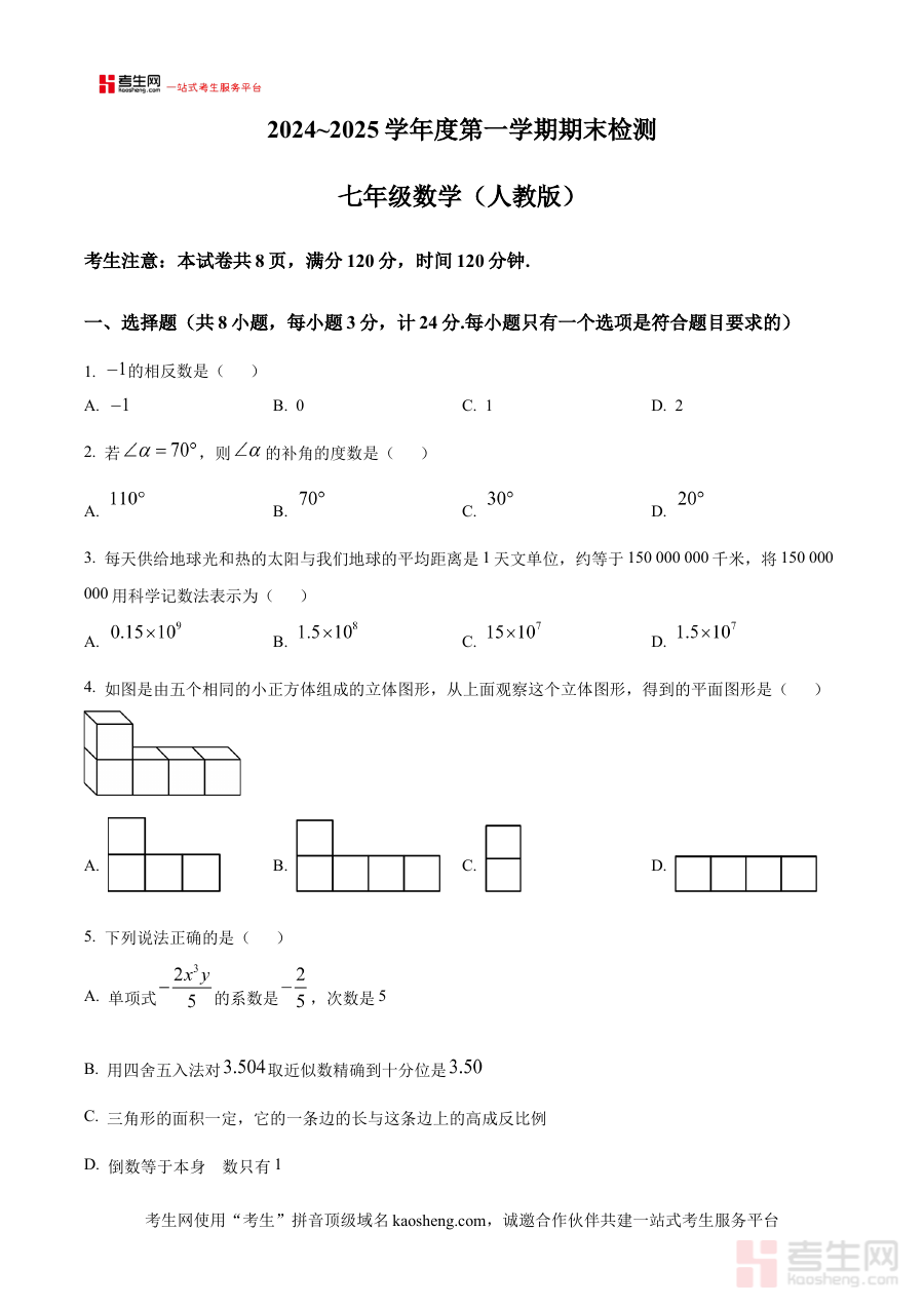 《精品解析:陕西省西安市高陵区部分学校2024-2025学年七年级上学期期末检测数学试题(原卷版)》是聚焦2024-2025学年陕西省西安市高陵区部分学校七年级上学期期末数学检测的专业备考资料,紧密契合该区域该学段期末检测的命题环境与核心要求,为相关学习者和教育工作者提供了与实际考试场景高度匹配的原卷内容参考,有助于使用者快速把握当地期末检测的命题方向、形式特征及基本要求,为后续精准备考奠定坚实基础。