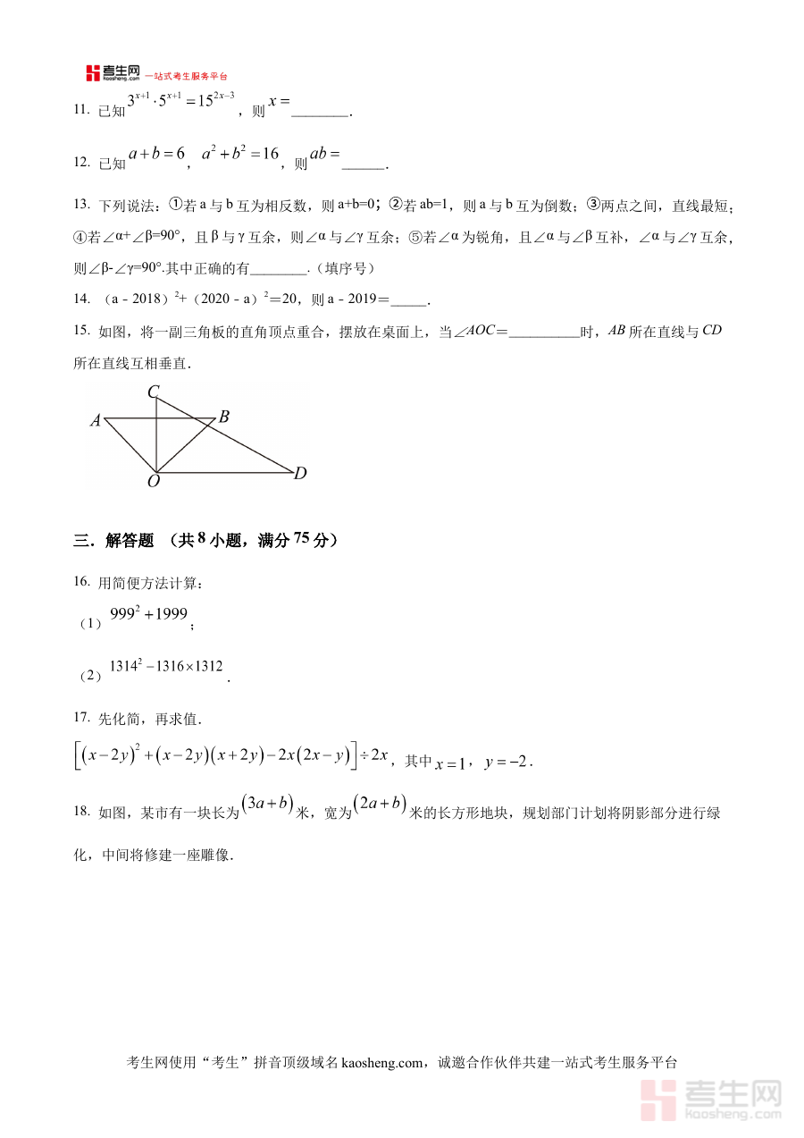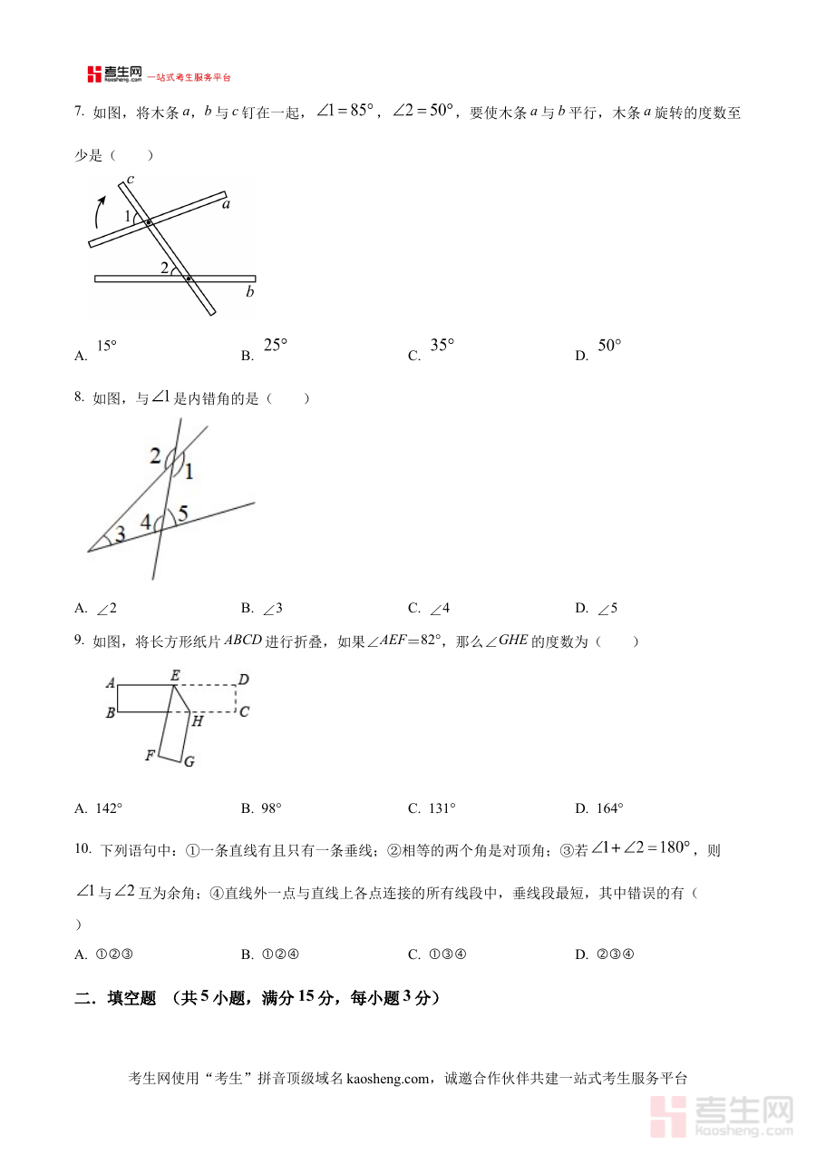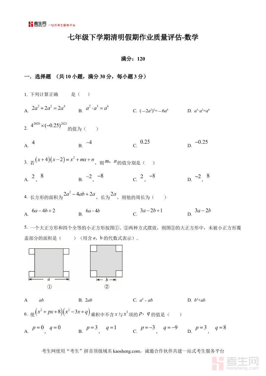 本资料主要适用于辽宁省沈阳市第一二七中学七年级下学期的学生,通过使用原卷版试卷进行练习,学生能够熟悉校内月考的考查形式与节奏,提升对阶段知识的掌握程度,为后续学习与考试积累实战经验;同时也为家长了解孩子学习状况、配合学校教学提供了有效参考。